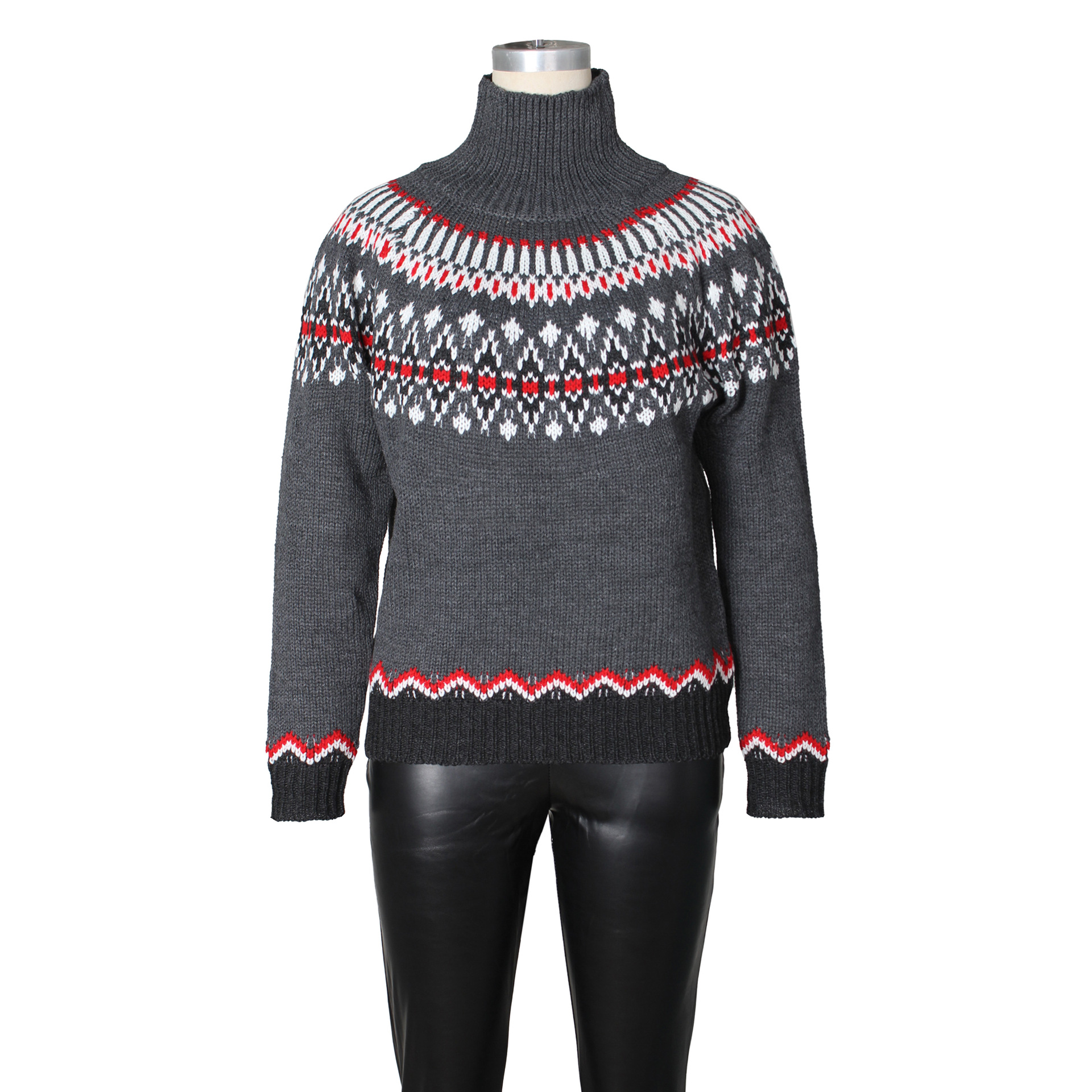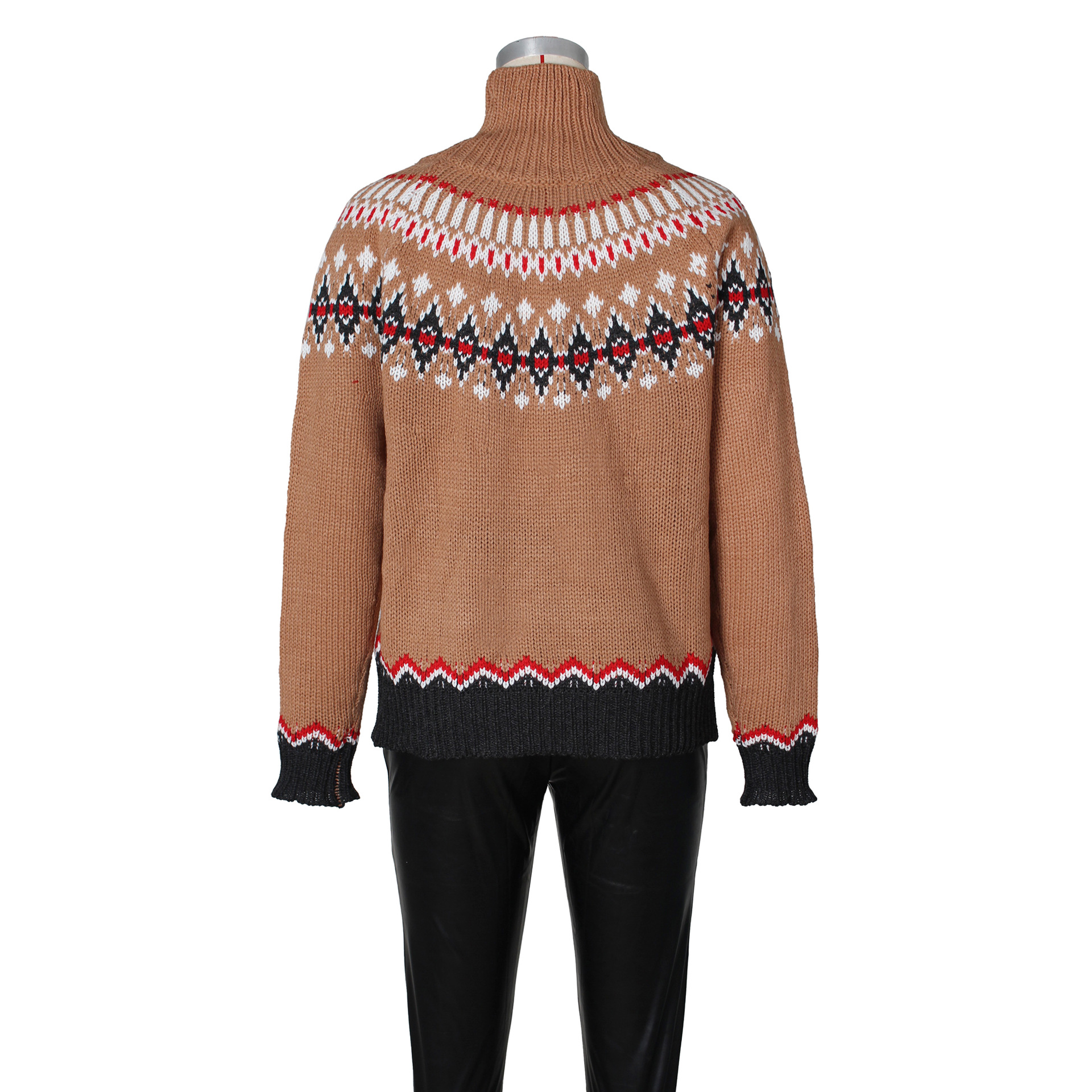Autumn Winter Turtleneck Brocade Sweater Retro Contrast Color Ethnic Knitwear Loose Warm Top