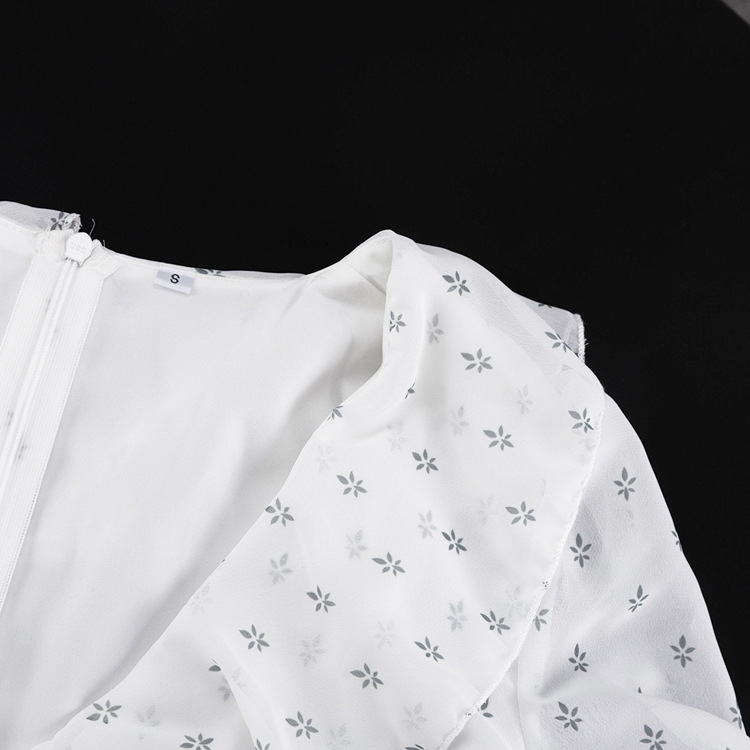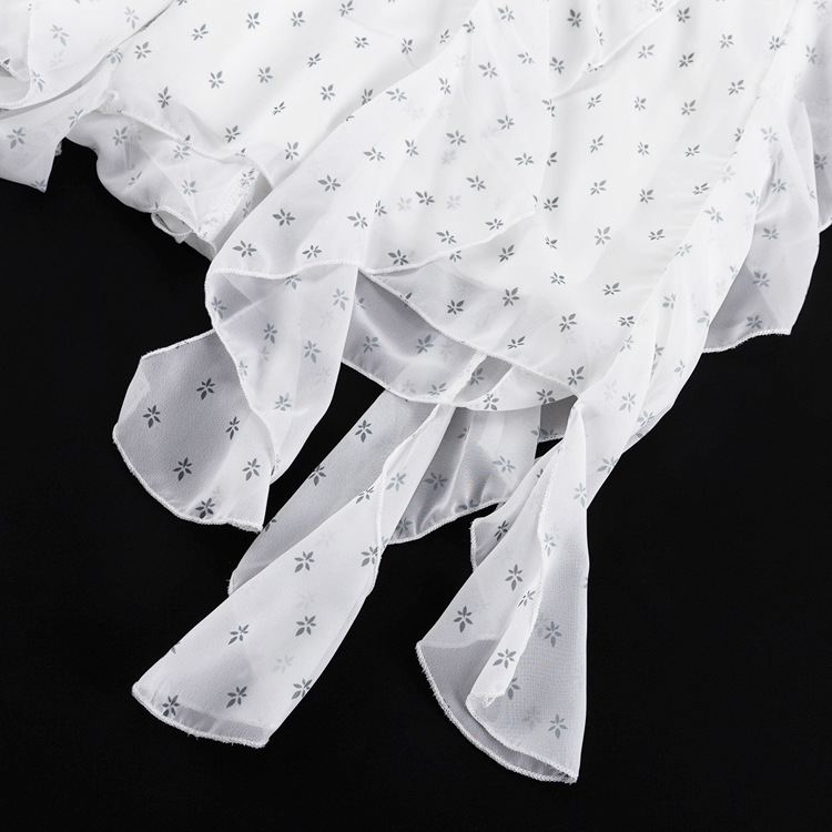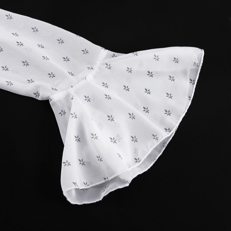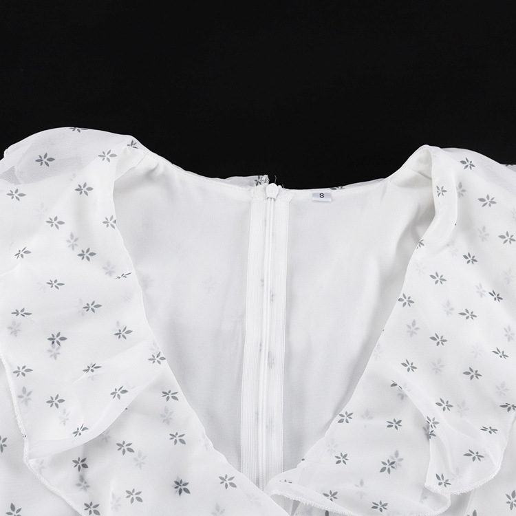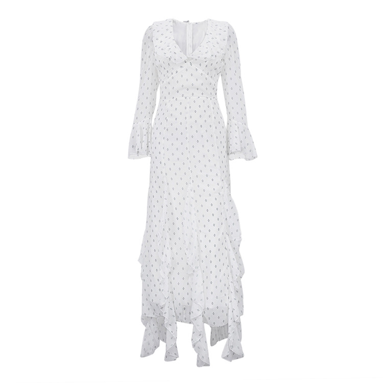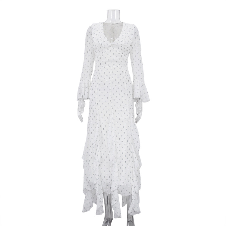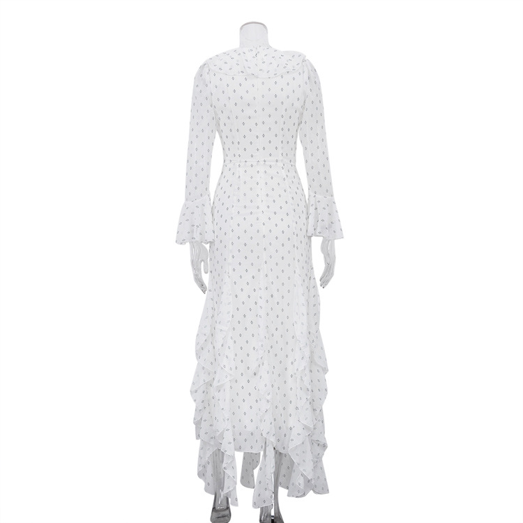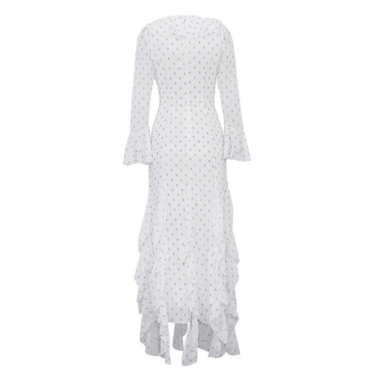 Printed Chiffon Ruffled Bell Sleeve High Waist Maxi Dress