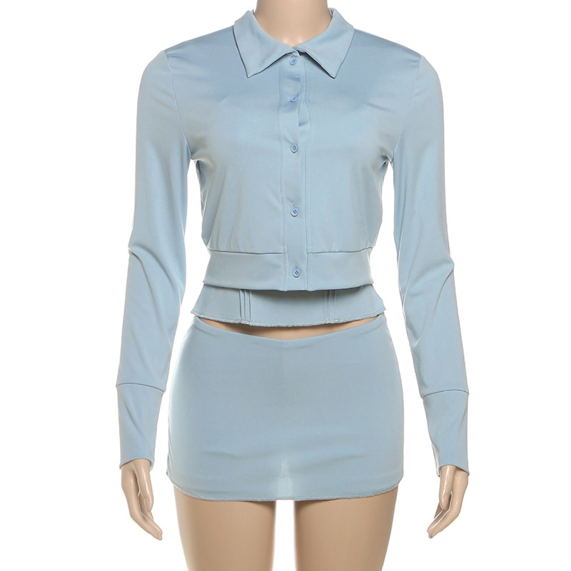 Women Clothing Autumn Solid Color Sexy Little Suspenders Vest Collared Cardigan Coat Pantskirt Three Piece Sets