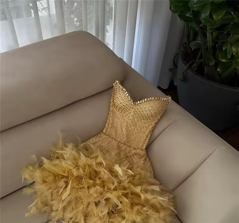 Feathers Short Prom Dress Beads dress