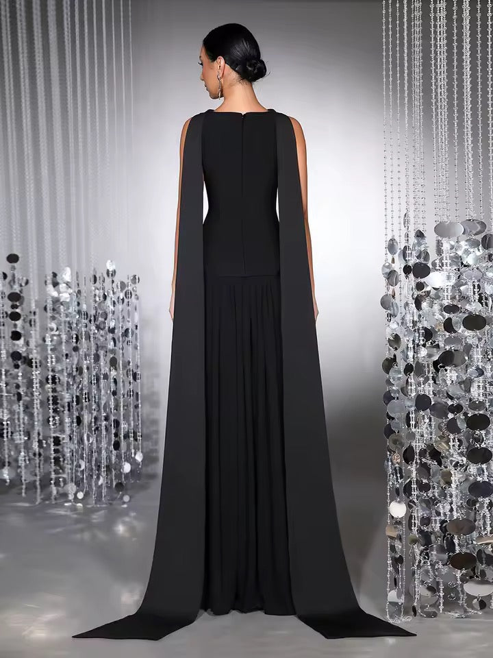 • Long sleeve, rhinestone, solid color, black, maxi dress