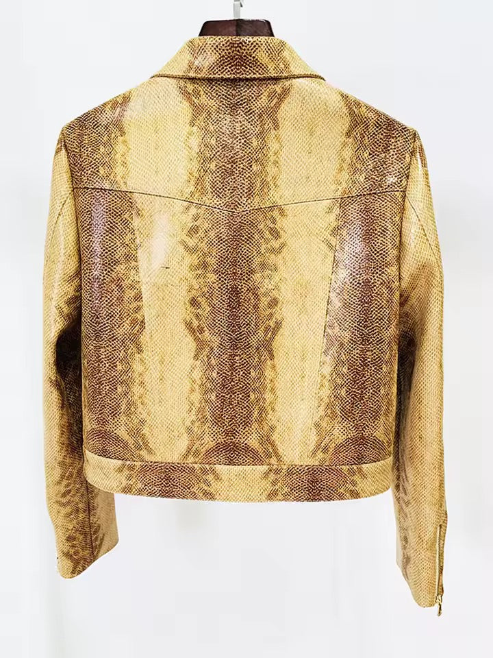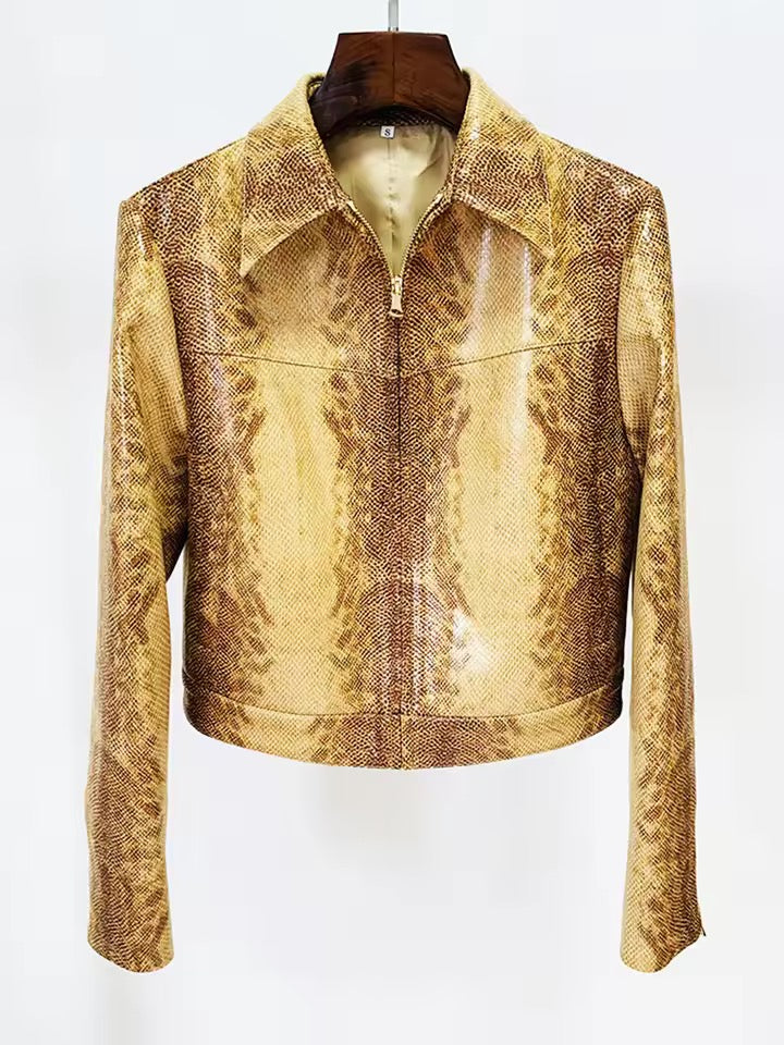 Snake Pattern Zipper Jacket Flare Pants Set
