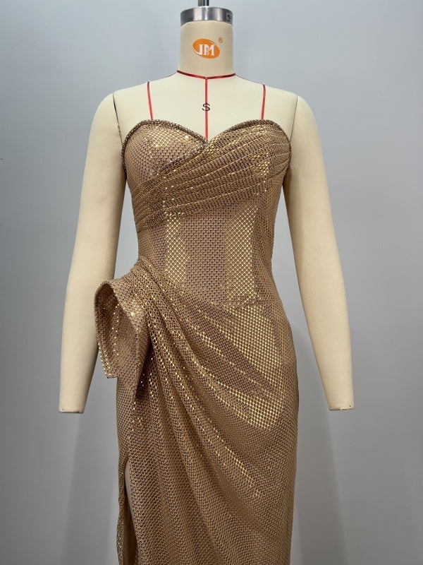Elevate your evening wardrobe with our Tube Top Beaded Slim Bag Hip Split Sequined Party Dinner Evening Dress. This stunning piece features a chic tube top design adorned with shimmering beads, ensuring you shine at any event.