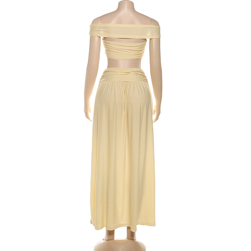 Sexy Tube Top Backless Simple Maxi Dress Two Piece Suit