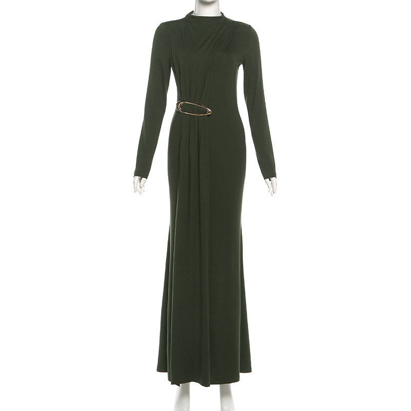 Elegant Slim Formal Dress Solid Color Ribbon Dress