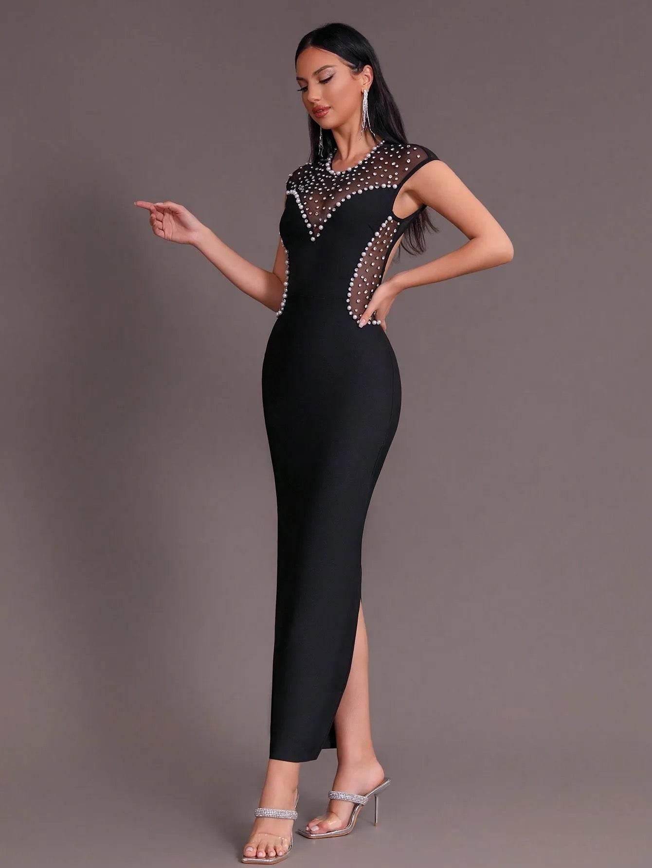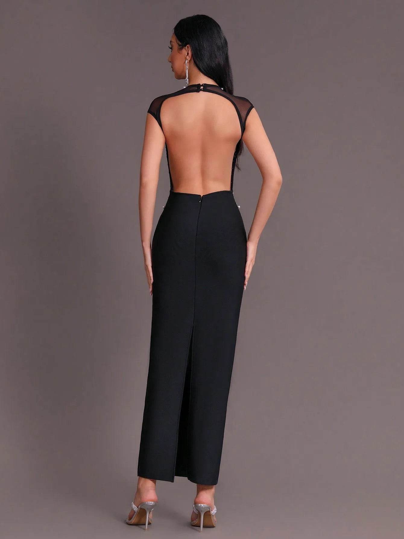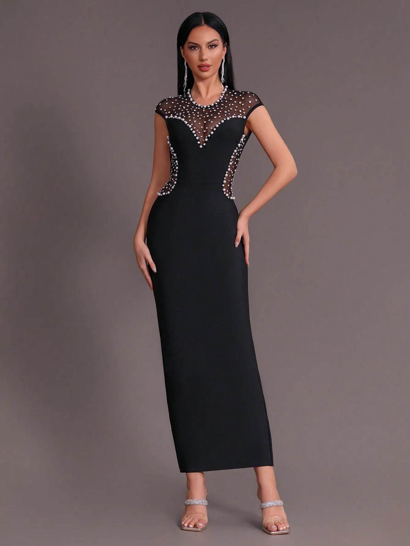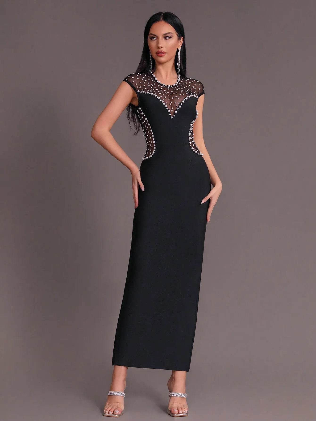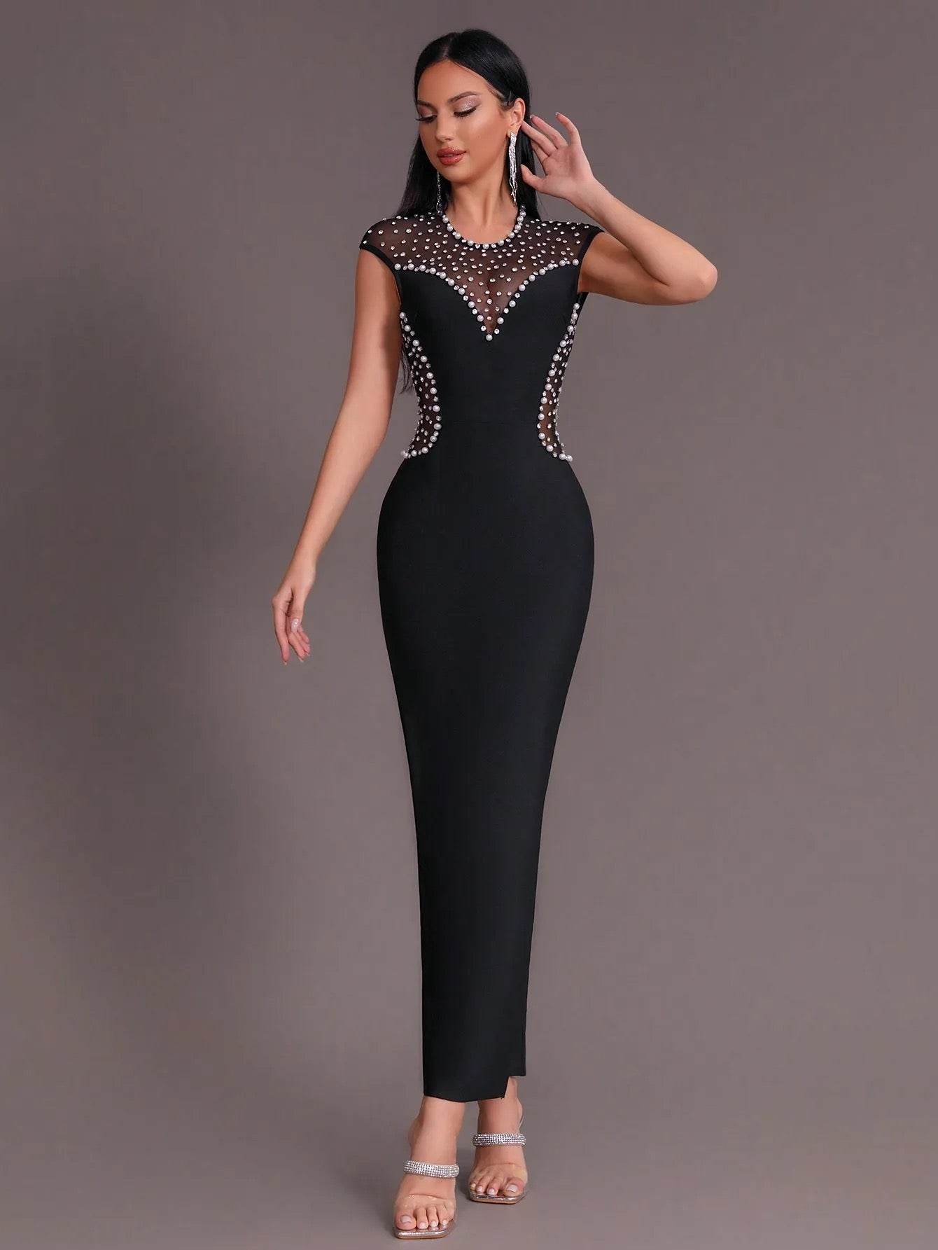 Backless Diamond Pearl Mesh Tight Long Bandage Dress