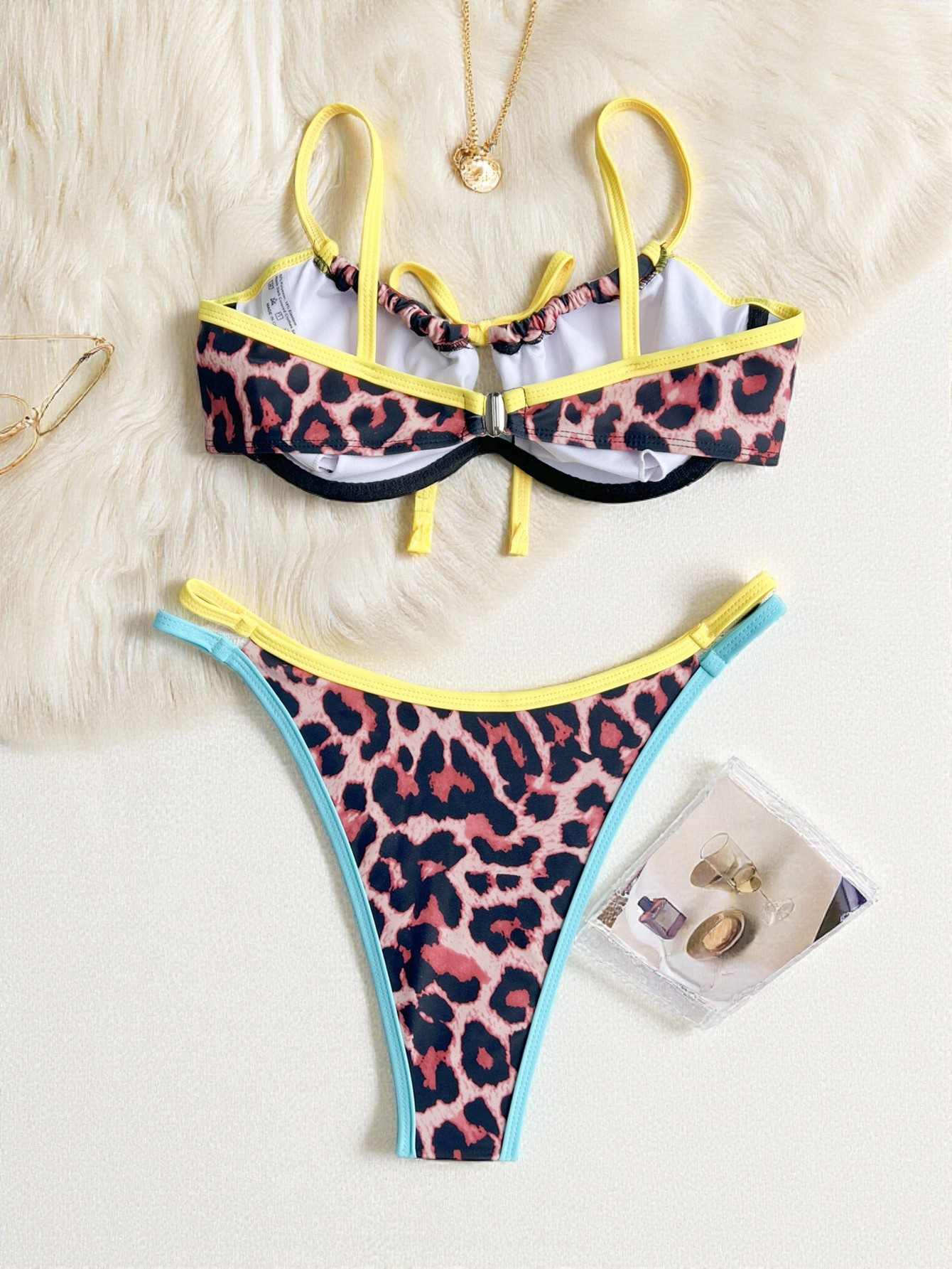 Bikini Push up Swimsuit Color Matching Backless Swimsuit