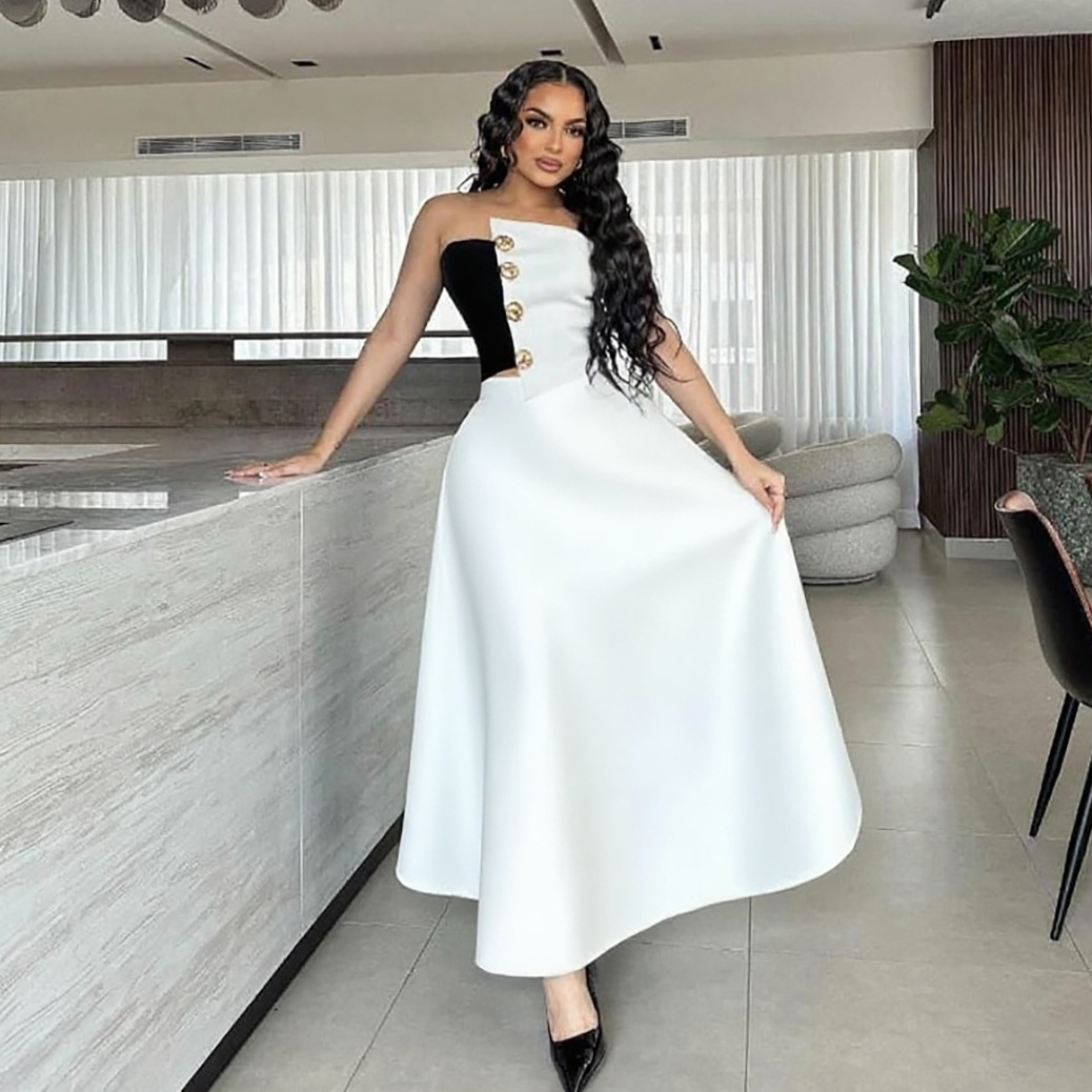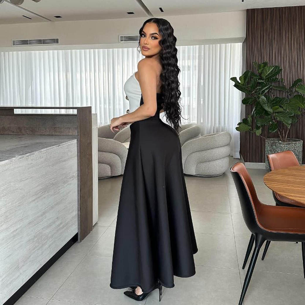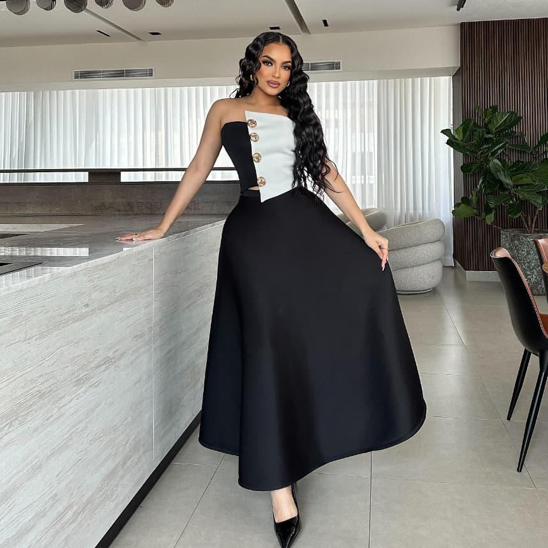 Color Matching Tank Top High Waist A line Dress Elegant Light Dress Two Piece Sets