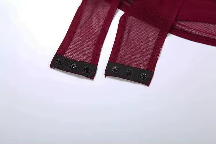 - Long sleeve, 3D flower, cut-out, slit, solid color, red, maxi dress