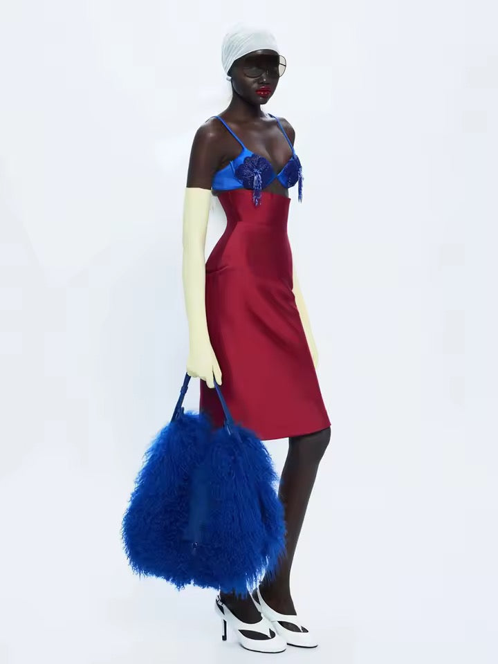 Corset Skirt Two Piece Set Sexy Beading Crop Top + Lace-Up Midi Slim Skirts Suits