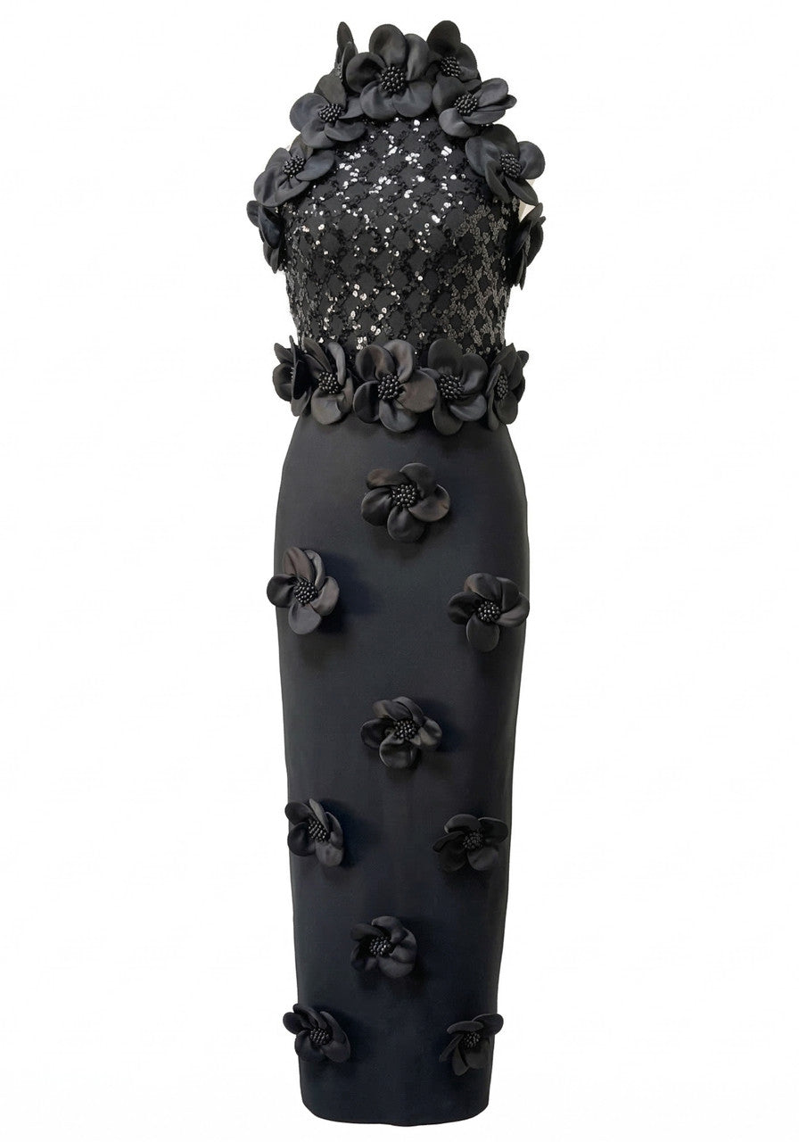 Floral Sequin Maxi Dress Black