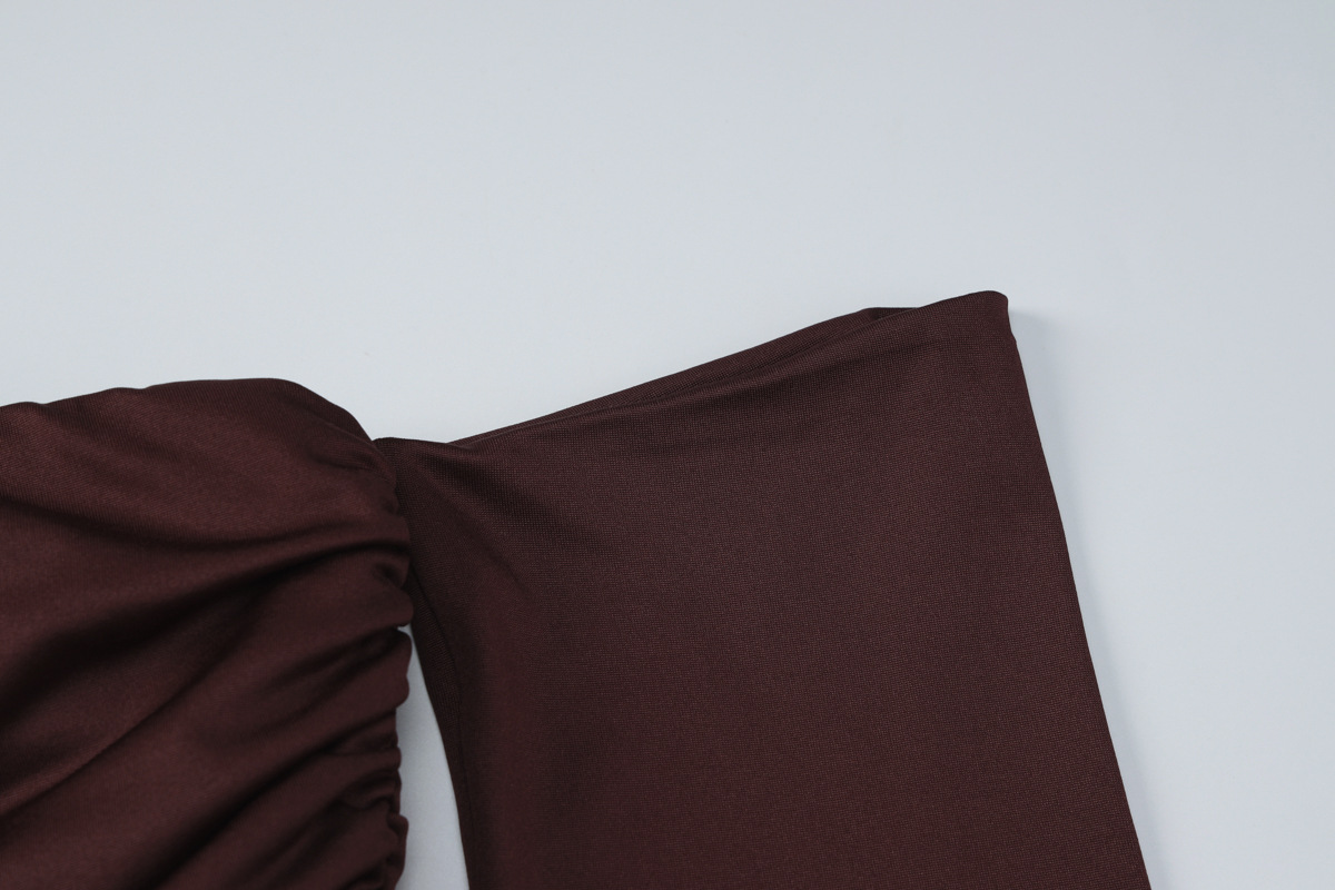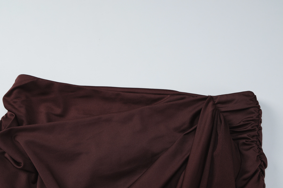 French Women Clothing Autumn Shoulder Long Sleeved Top Slim Fit Pleated Ribbon Hip Bag Skirt Outfit
