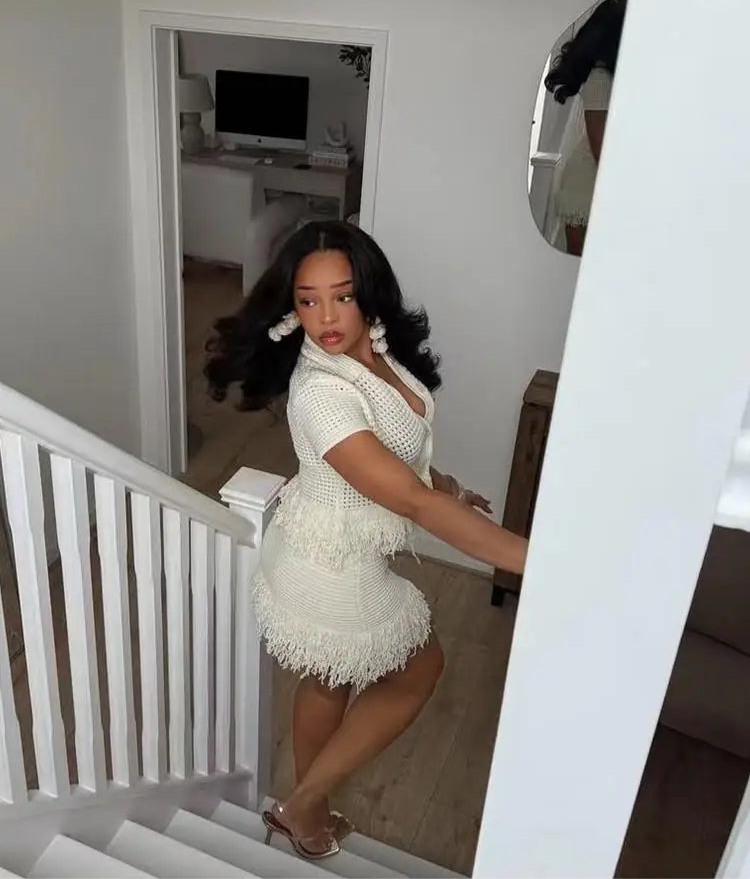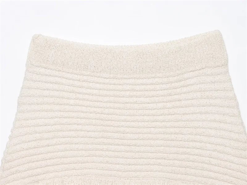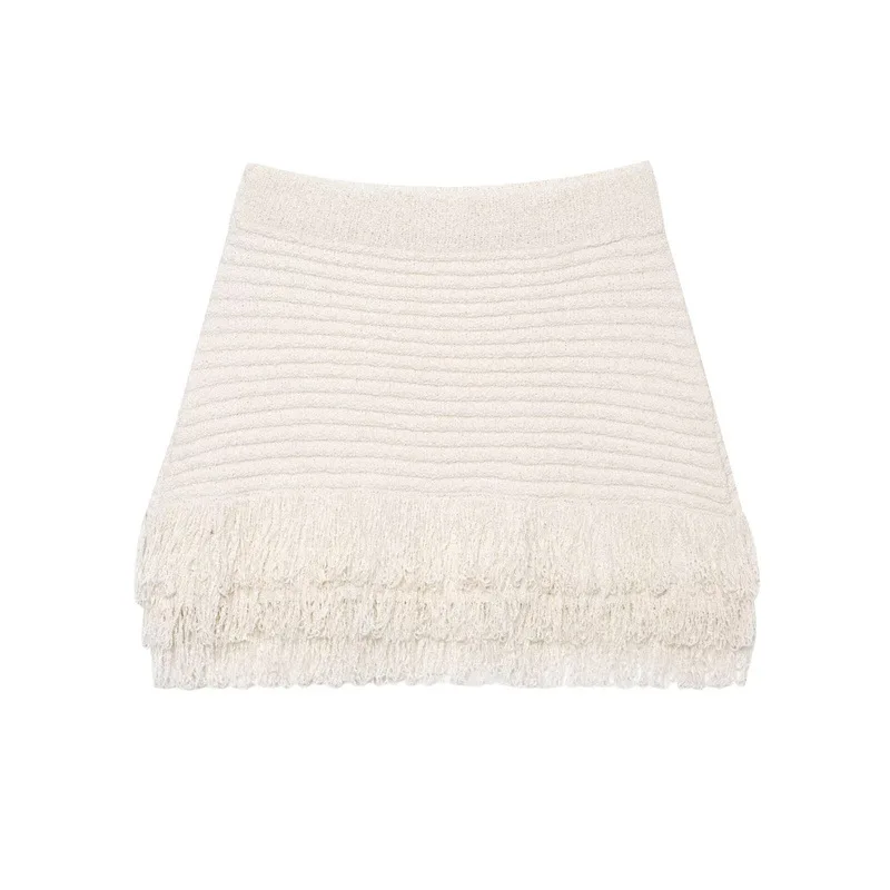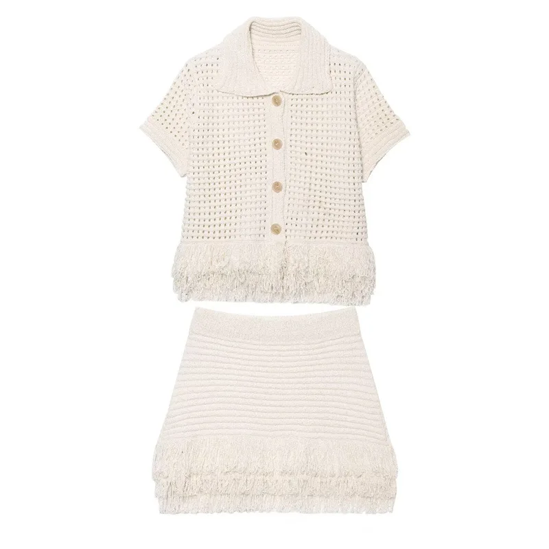 Joskaa Tassel Short Sleeve Casual Knitted Top tshirt Cardigan Skirt set