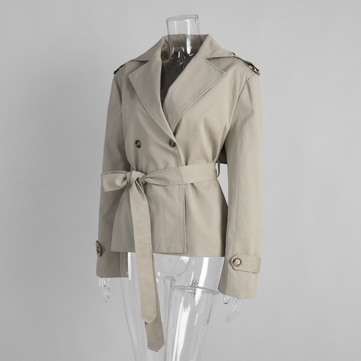 Long Sleeved Lace up Elegant Collared Belt Waist Trimming Coat
