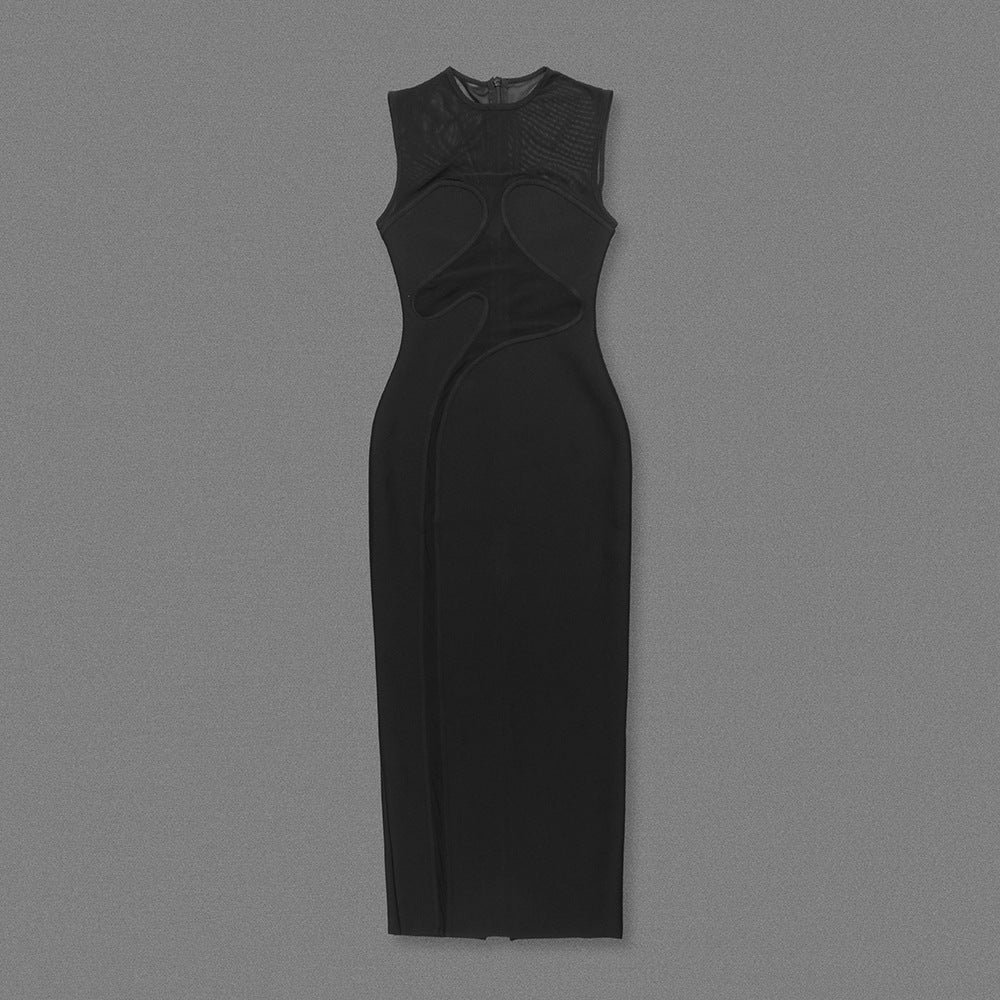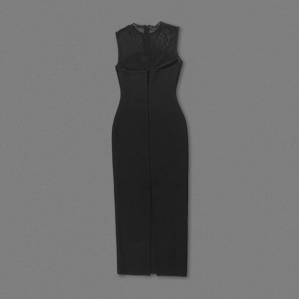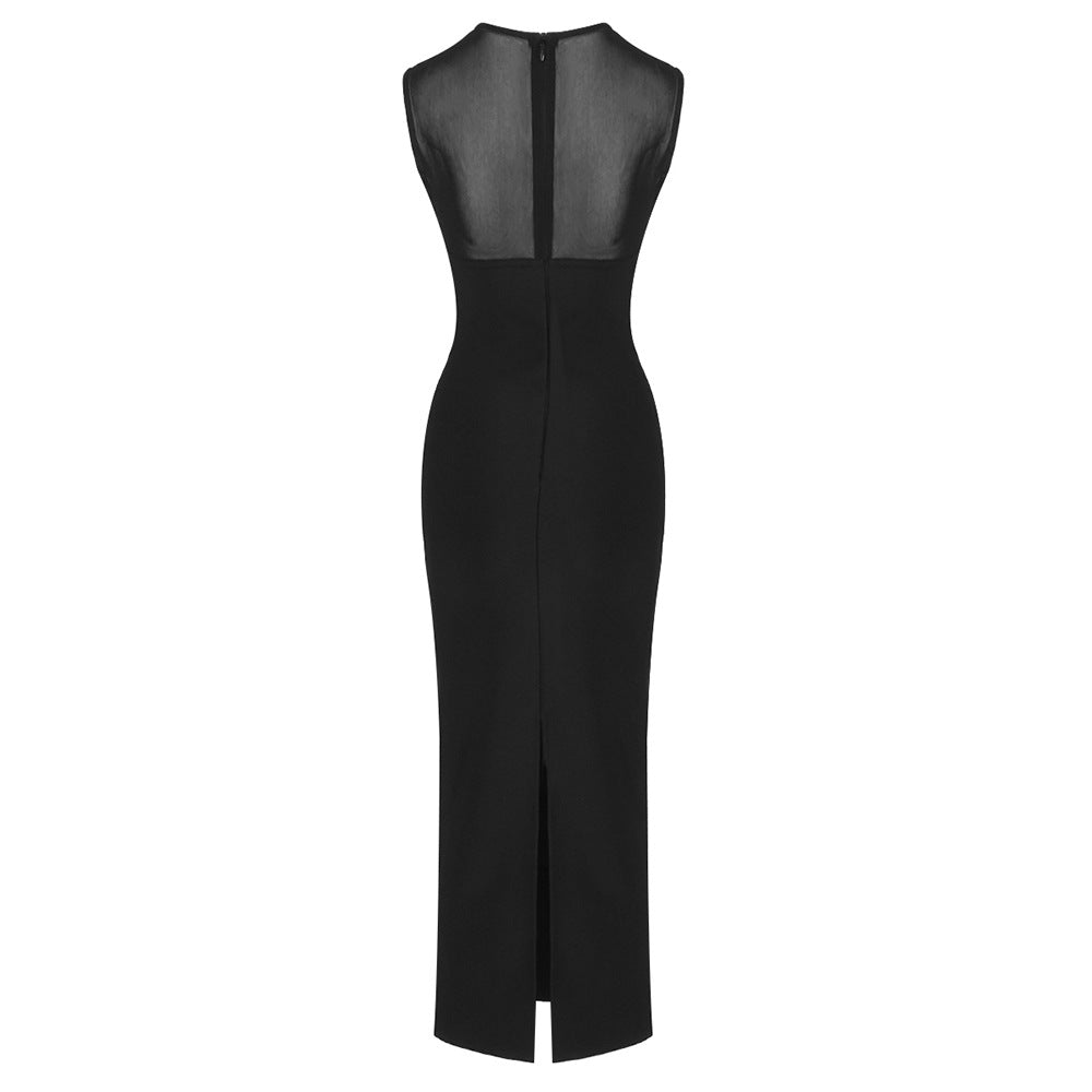 Mesh Patchwork Sheer O-Neck Elegant Sheath Split Bodycon