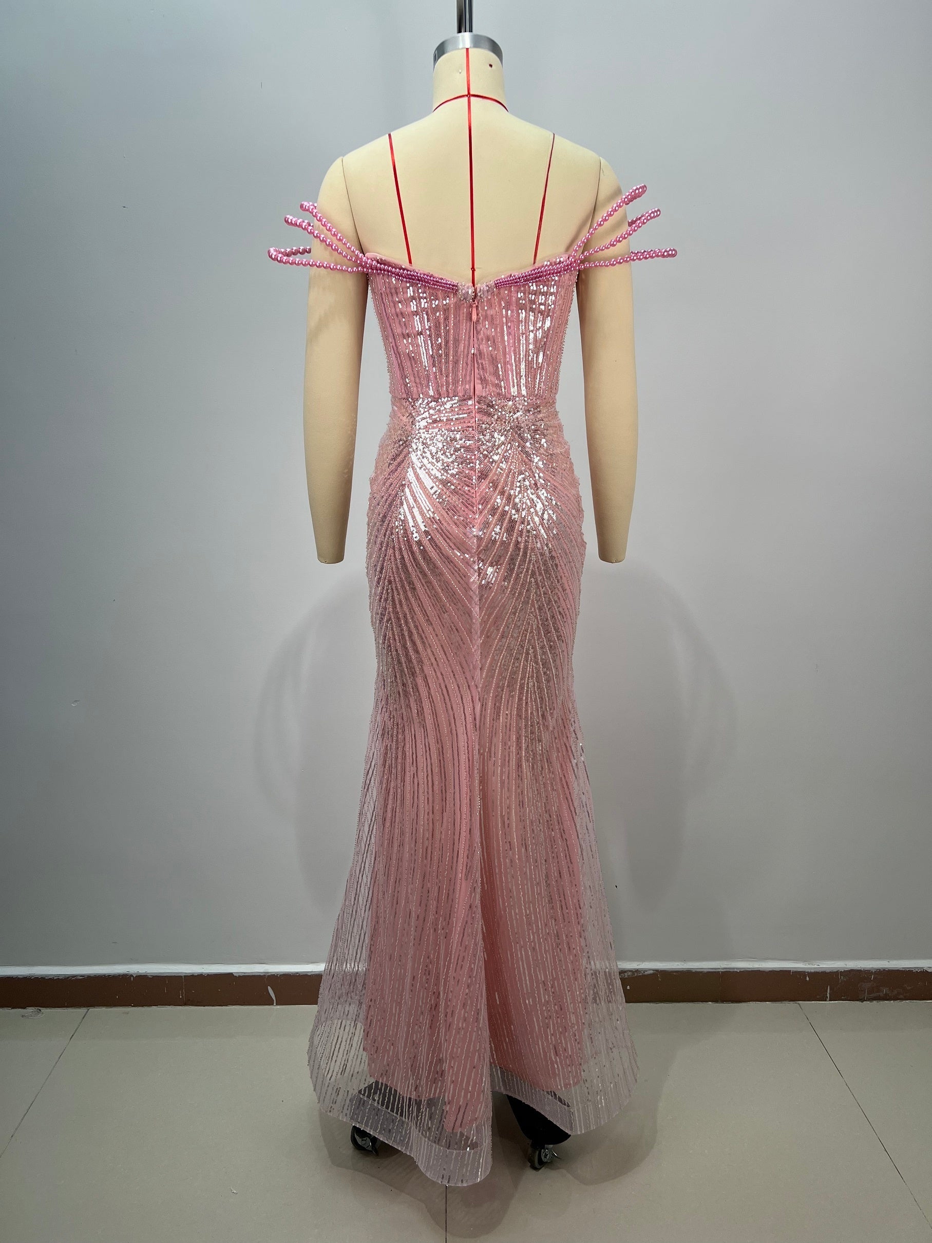 - Long sleeve, rhinestone, solid color, black, maxi dress