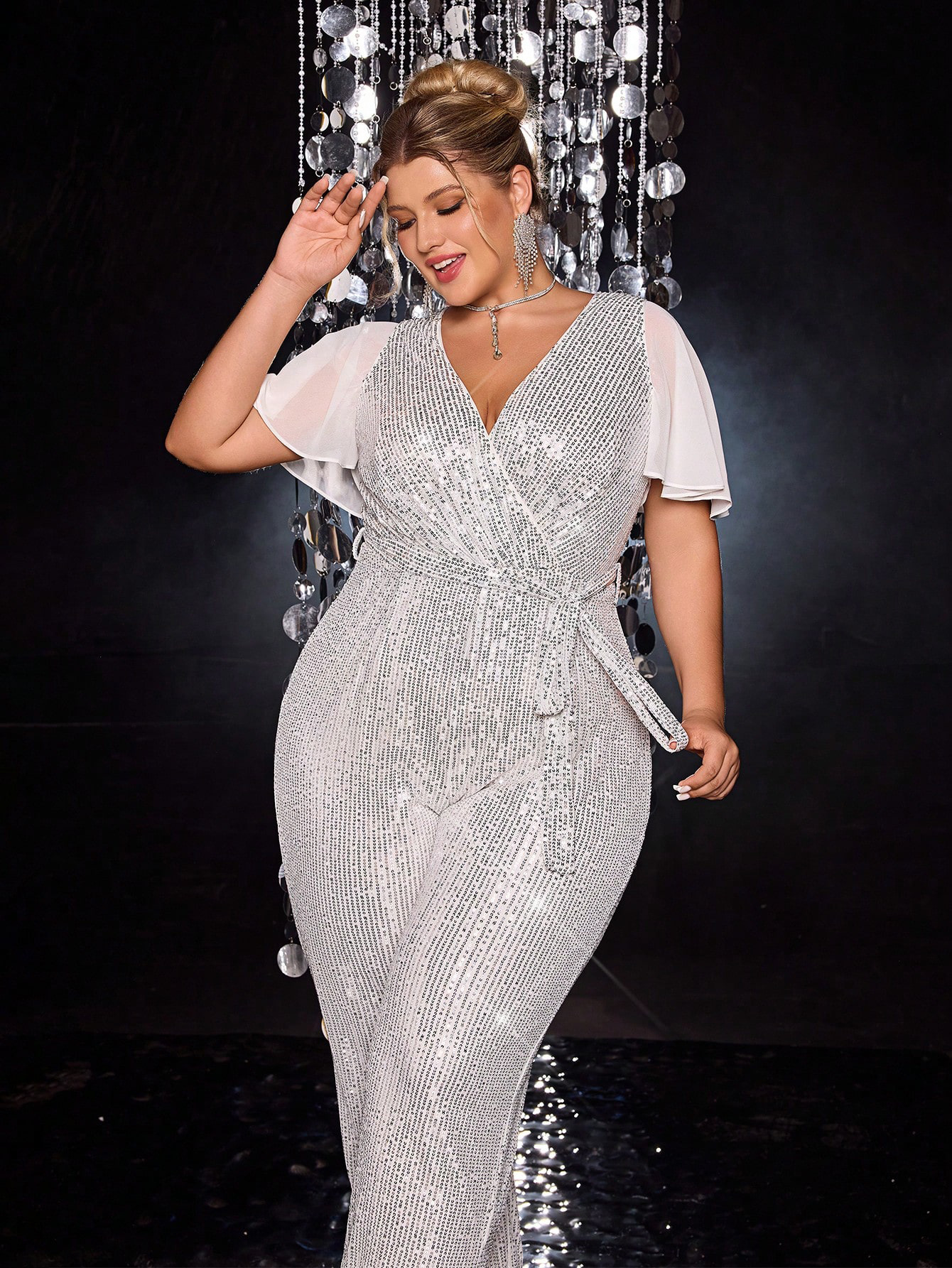 Plus Size Women Clothes Jumpsuit Film Personality Avant Garde V neck Casual Pants Mesh Half Sleeve Women Jumpsuit