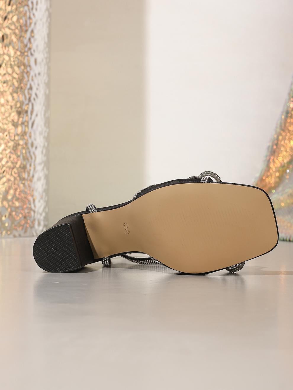Rhinestone Bow Transparent Band Crystal Thick Heel Party