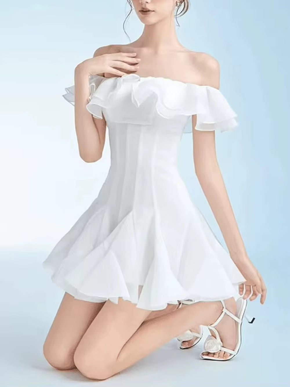 Elevate your wardrobe with the Ruffles Slim Breasted Mini Dress, a perfect blend of elegance and style. This chic mini dress features delicate ruffles that add a touch of femininity, making it ideal for both casual outings and special occasions.