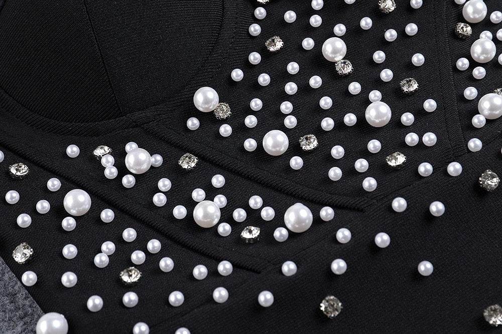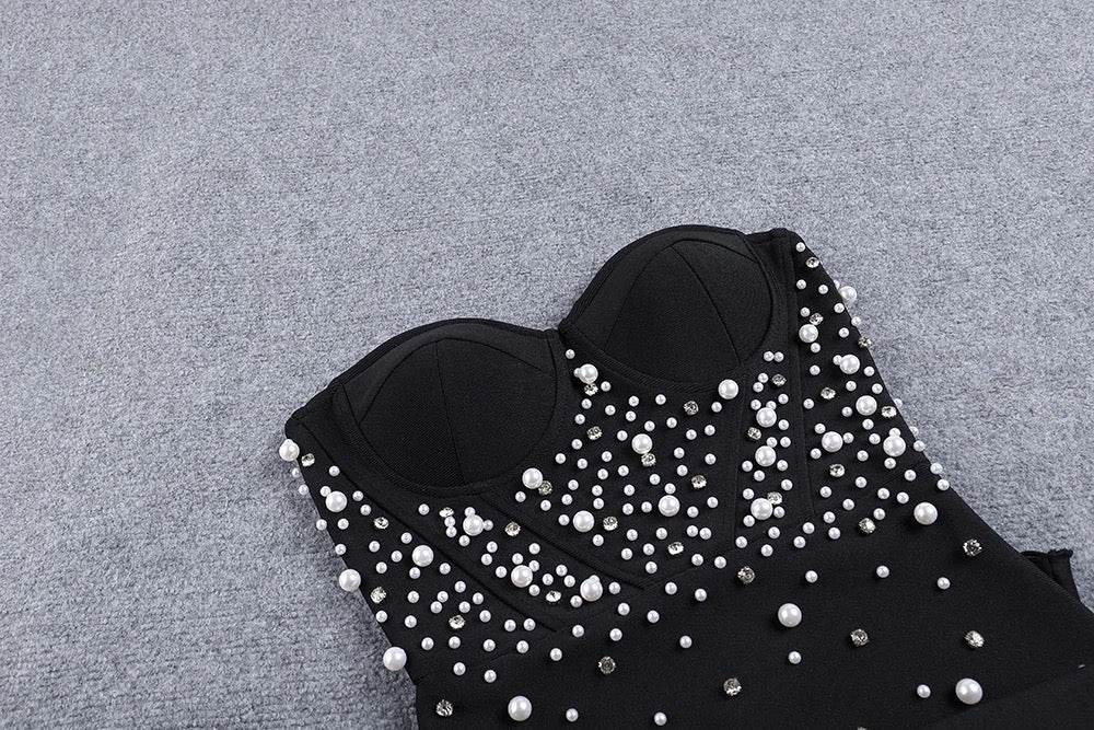 Unique Diamond Asymmetric Ruffle Edge Mesh Strapless dress