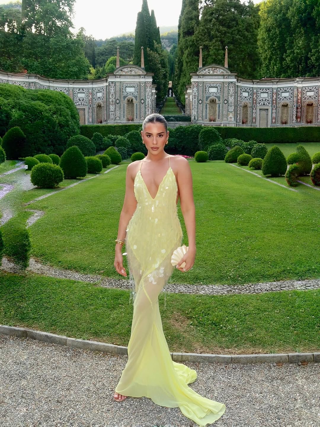 Introducing the v-Neck Backless Halter Round Glitter Tassels Peach Buttocks Cross dress, a stunning blend of elegance and playful charm. This dress features a flattering v-neckline that accentuates your collarbone, while the backless design adds a daring twist.