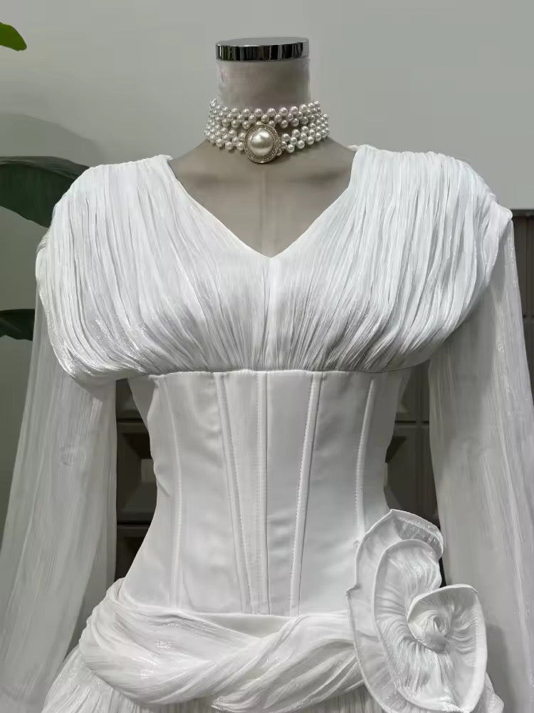 Introducing the V Neck Lantern Sleeve Ruffles Mini Dress, a perfect blend of elegance and playfulness. This dress features a flattering V-neckline that enhances your silhouette, while the lantern sleeves add a touch of sophistication.