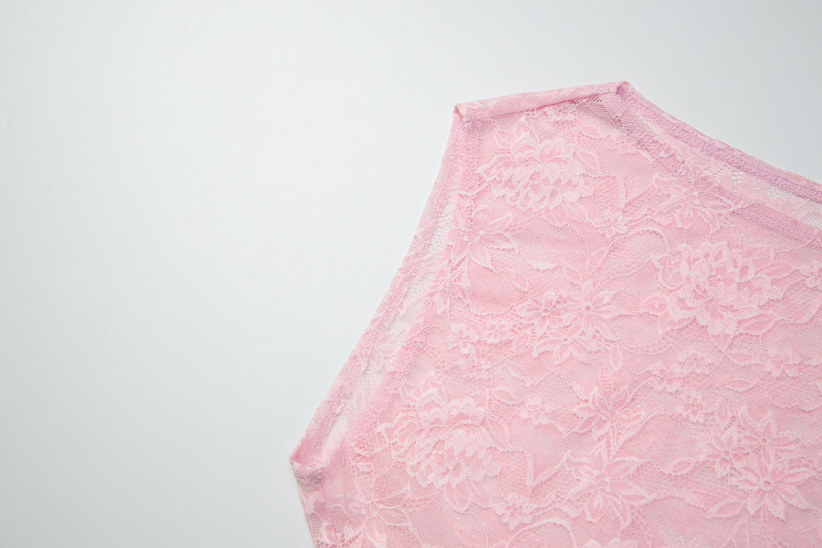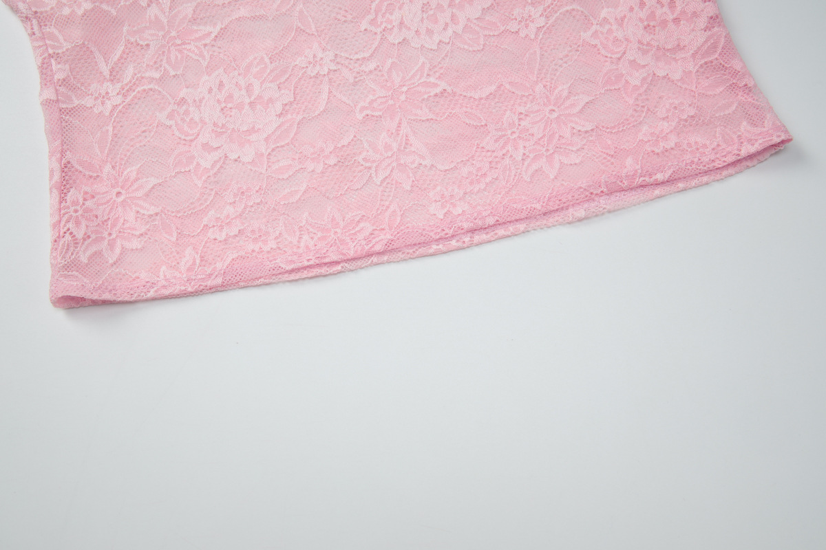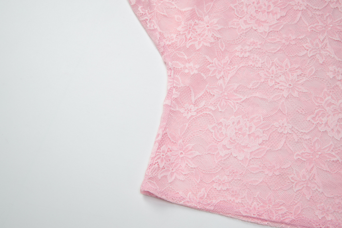 Slim Hollow Out Cutout Lace Diagonal Collar Tight T shirt Sheer Top