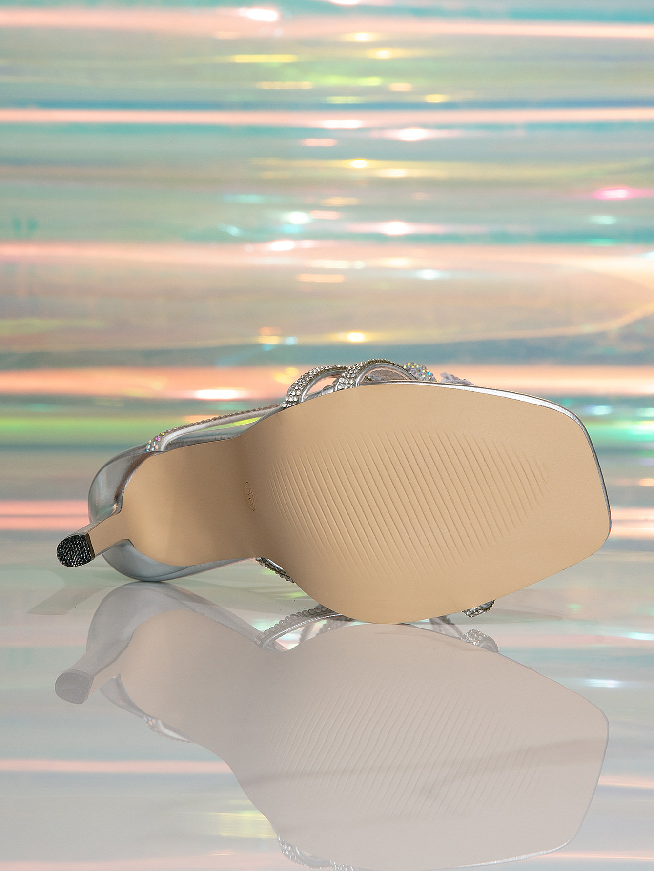 One Strap Floral Rhinestone Sandals Fairy Sexy Snakelike Winding Stiletto