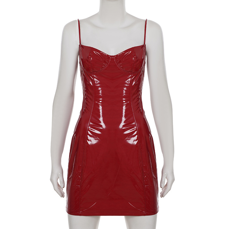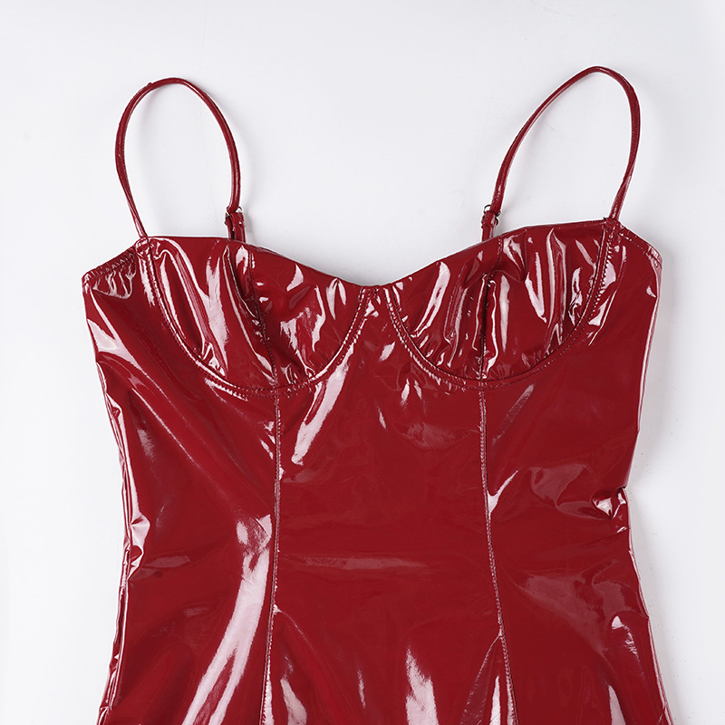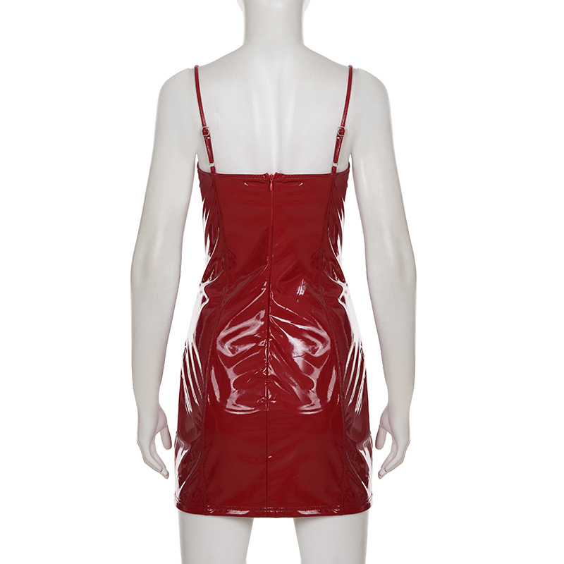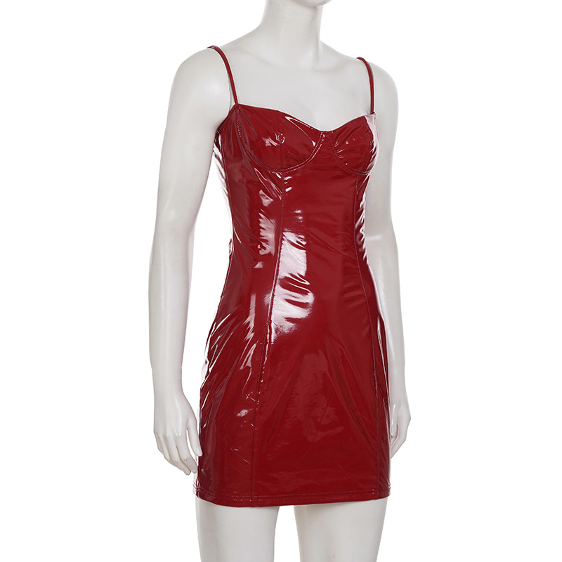 Bright Leather Bag Hip Show Chest Faux Leather Strap Dress