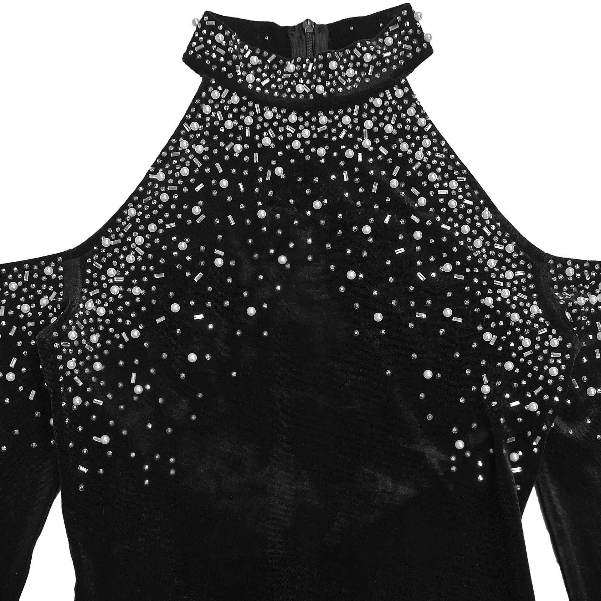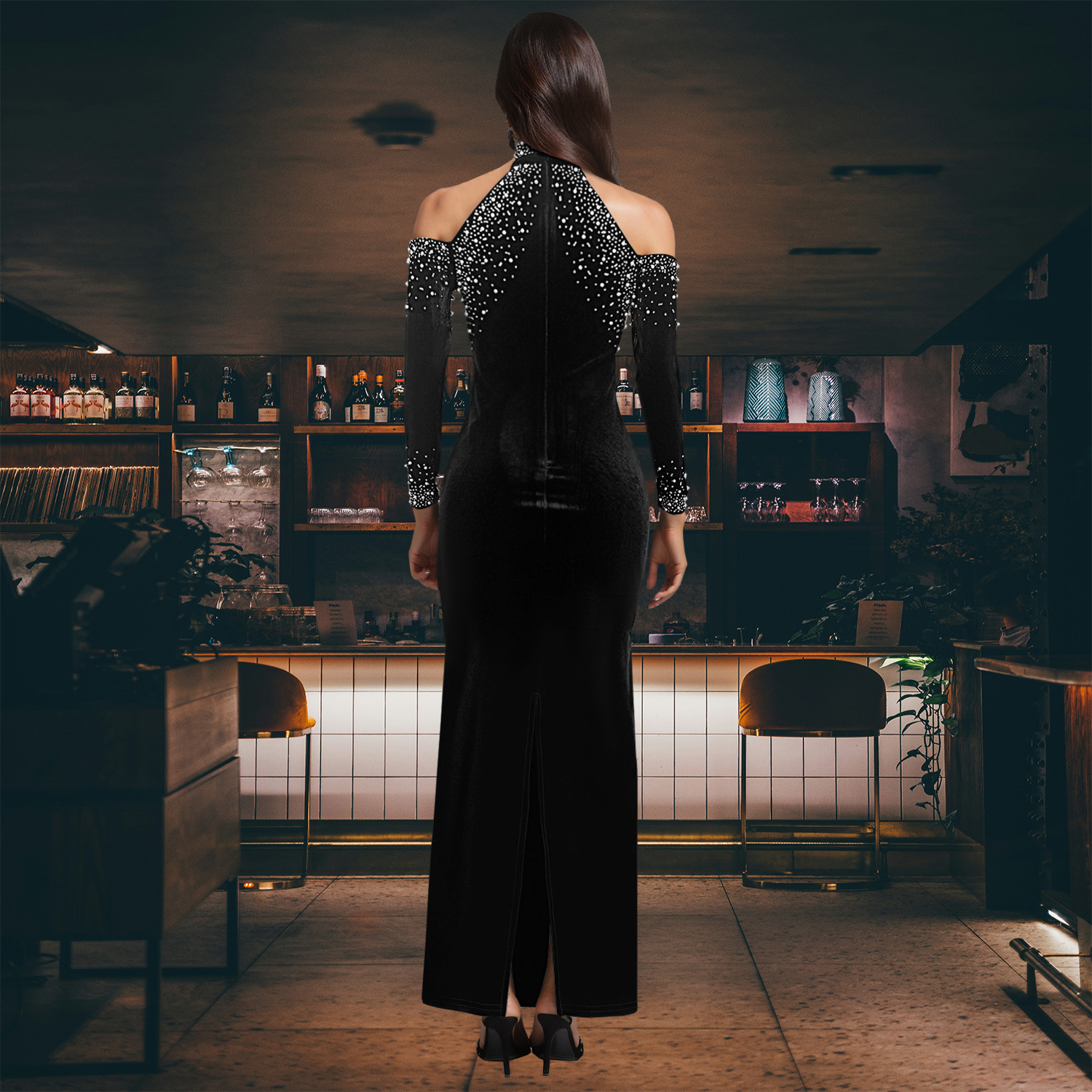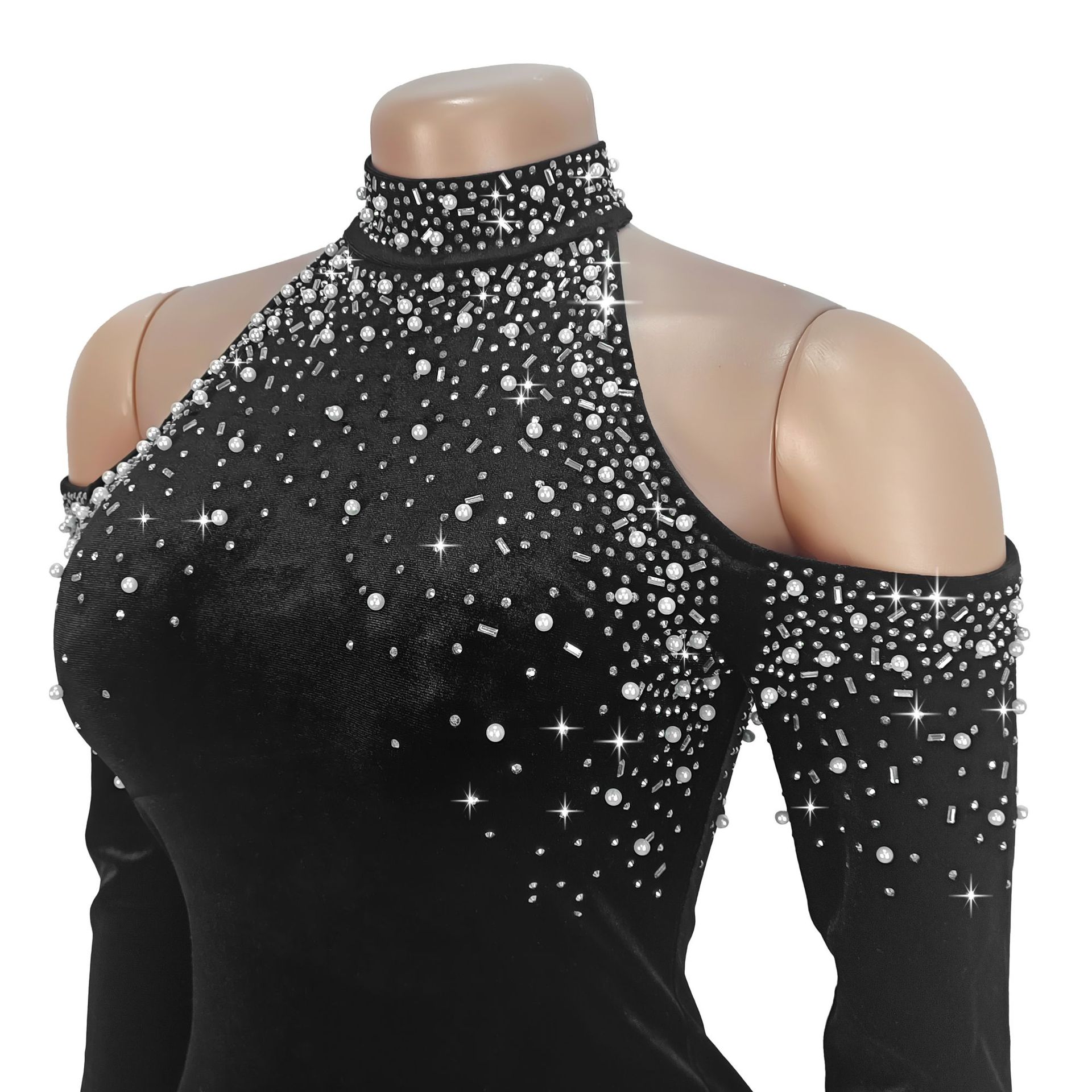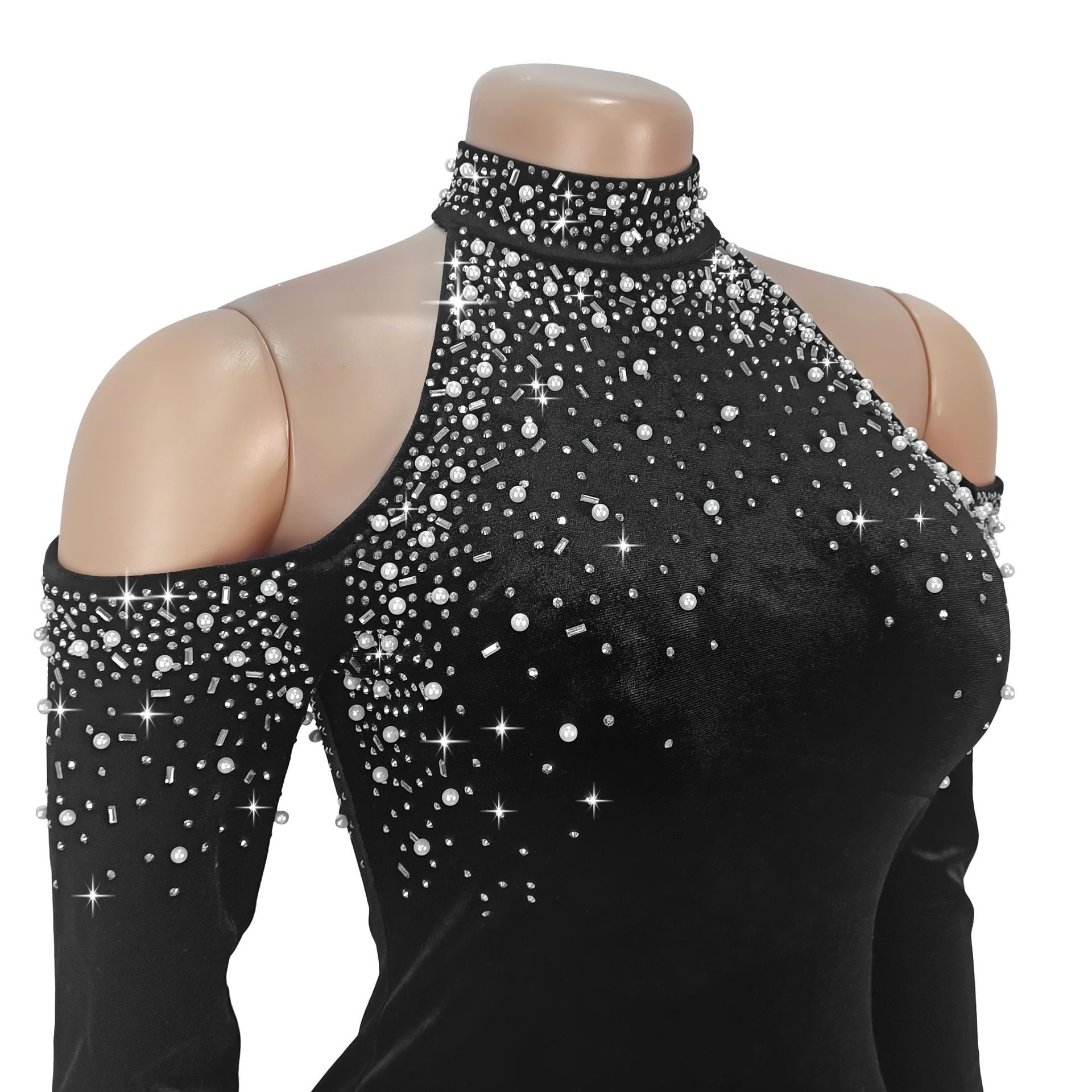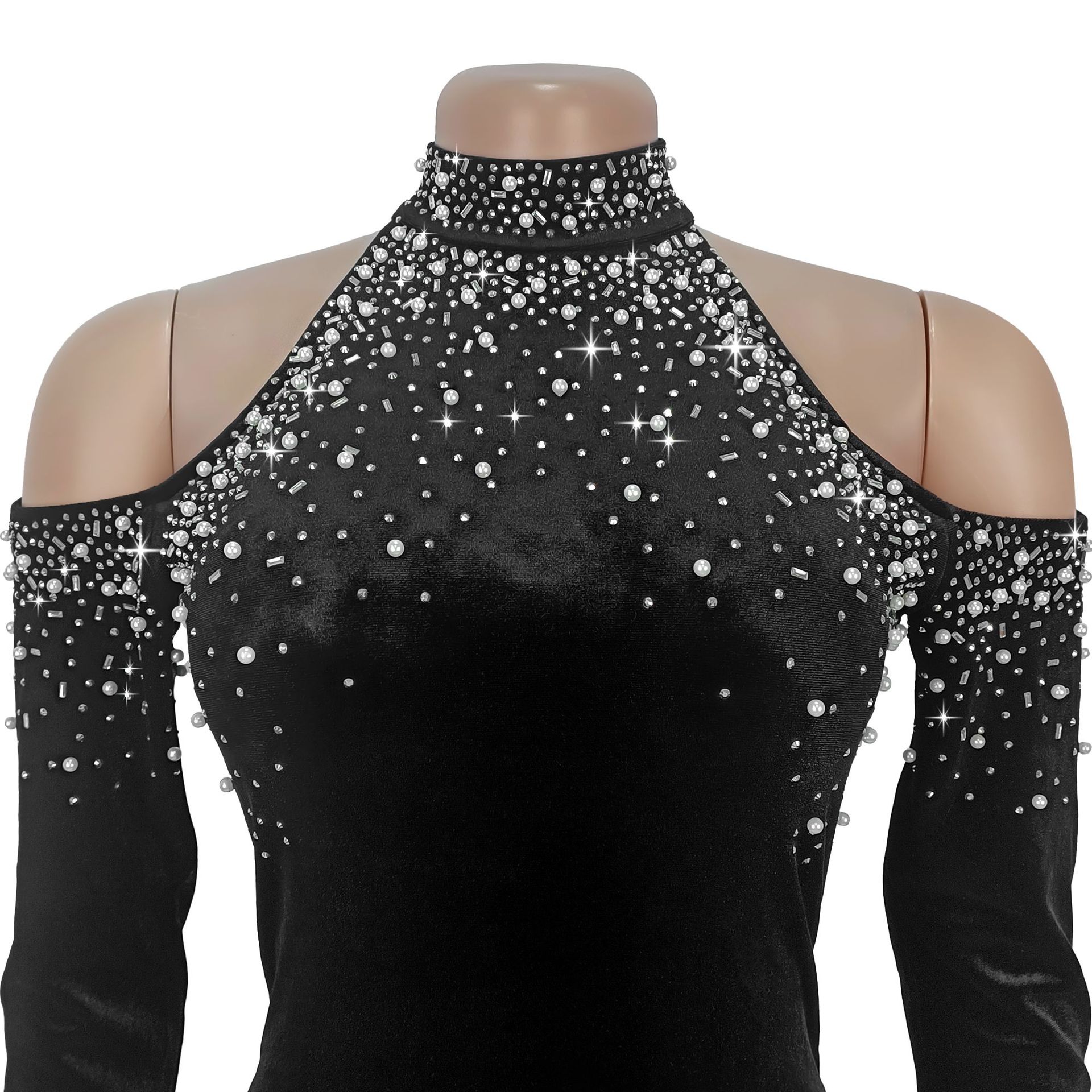 Rhinestone Bubble Beads Arm Covering Sexy Dress
