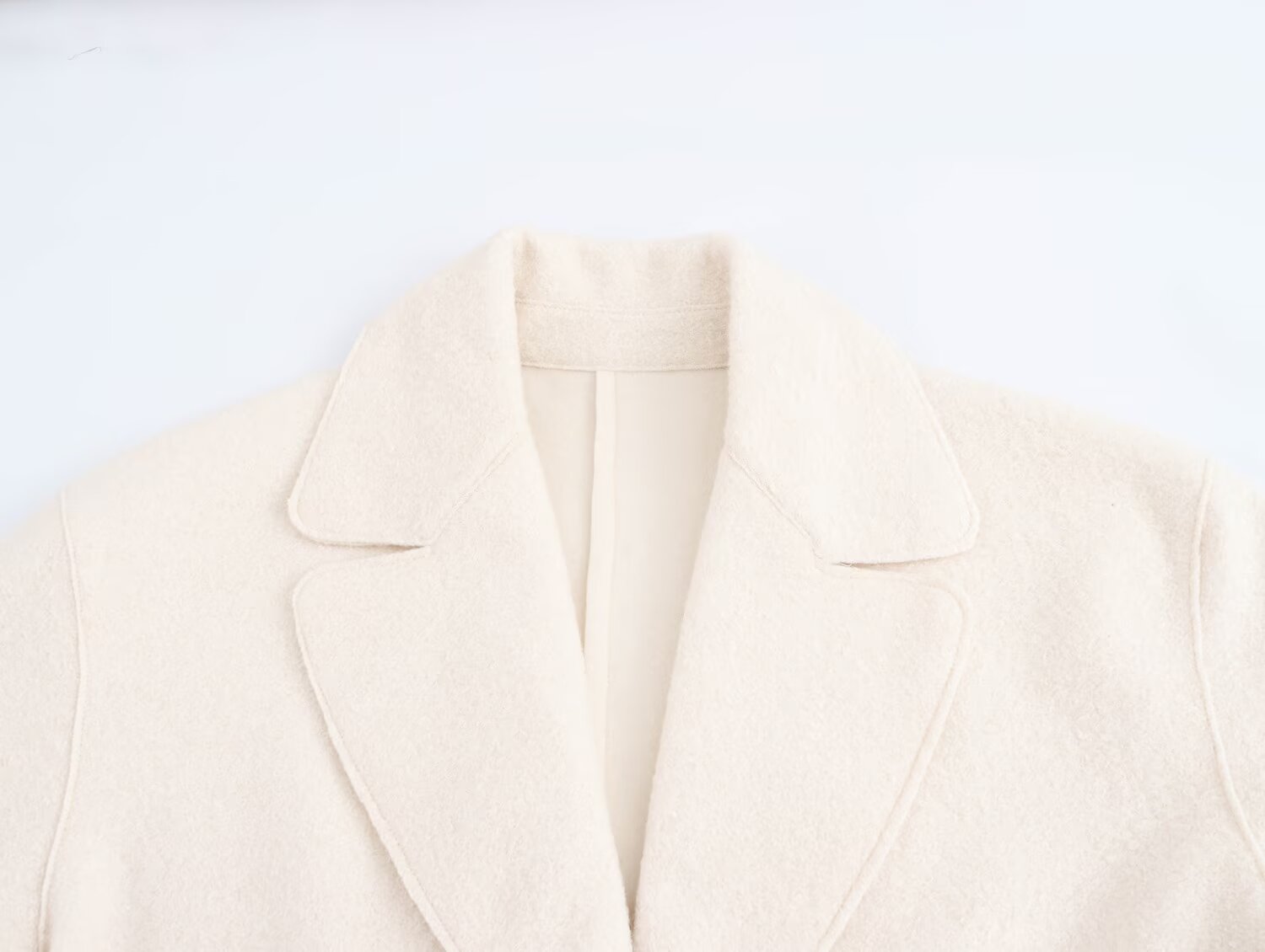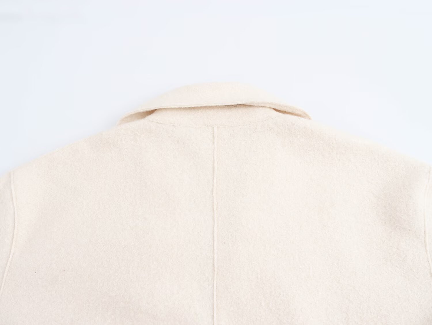 Casual Polo Collar Single Breasted Long Sleeve Terry Woolen Coat