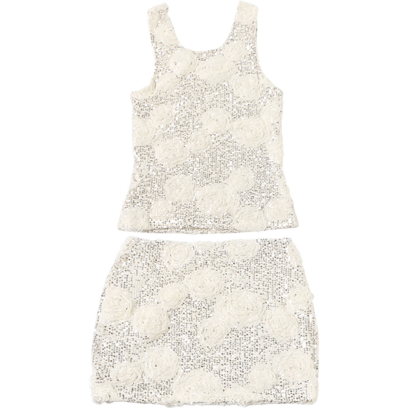 Autumn Winter Women Clothing Fashionable Sequ Three Dimensional Floral Vest Top Hip Wrapped Sexy Skirt Outfit