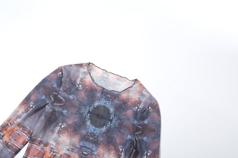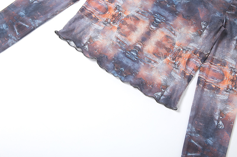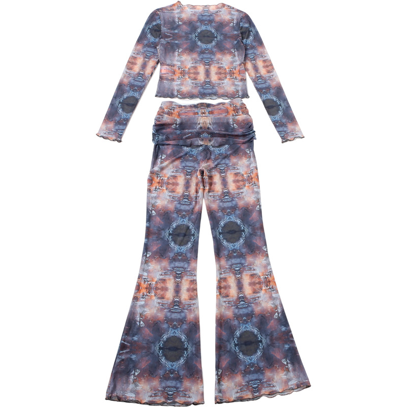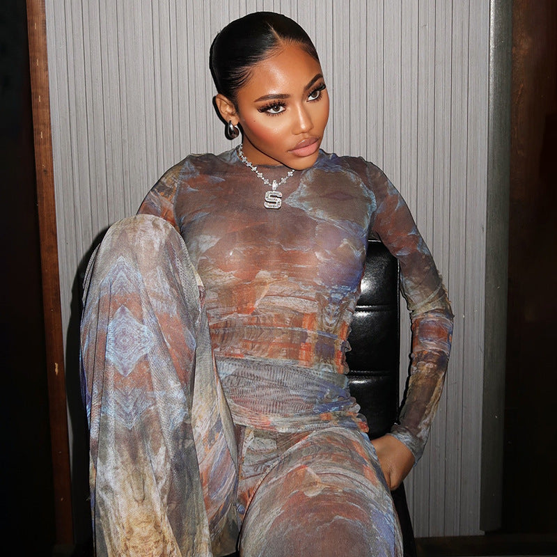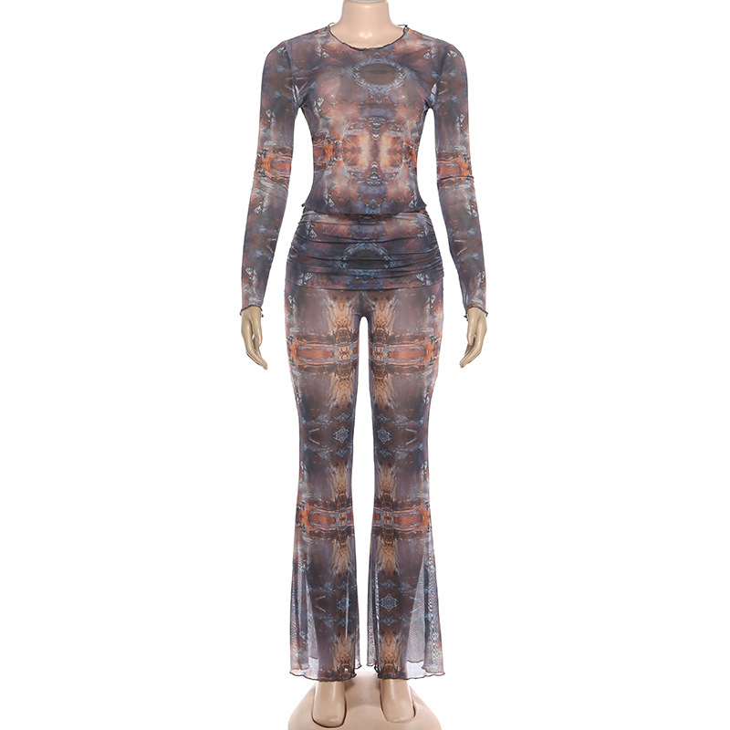 Long Sleeve round Neck Top Sexy See through Slim Fit Trousers Set