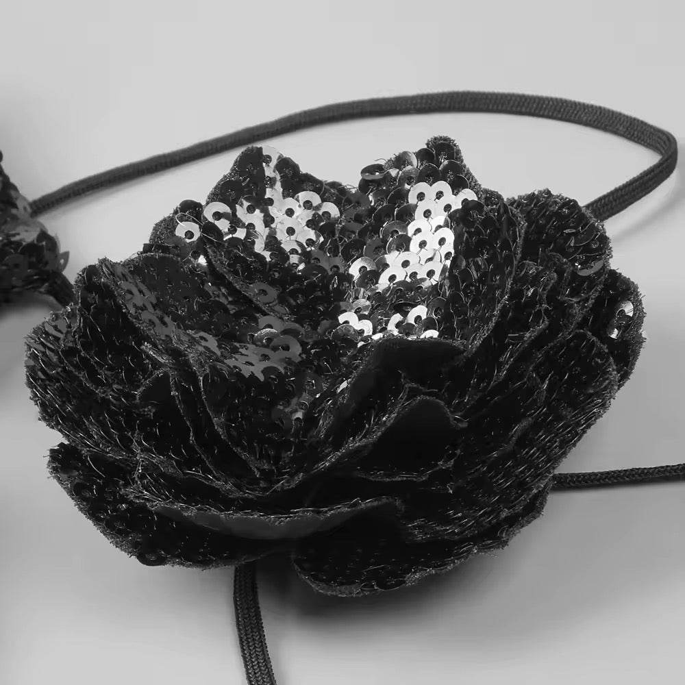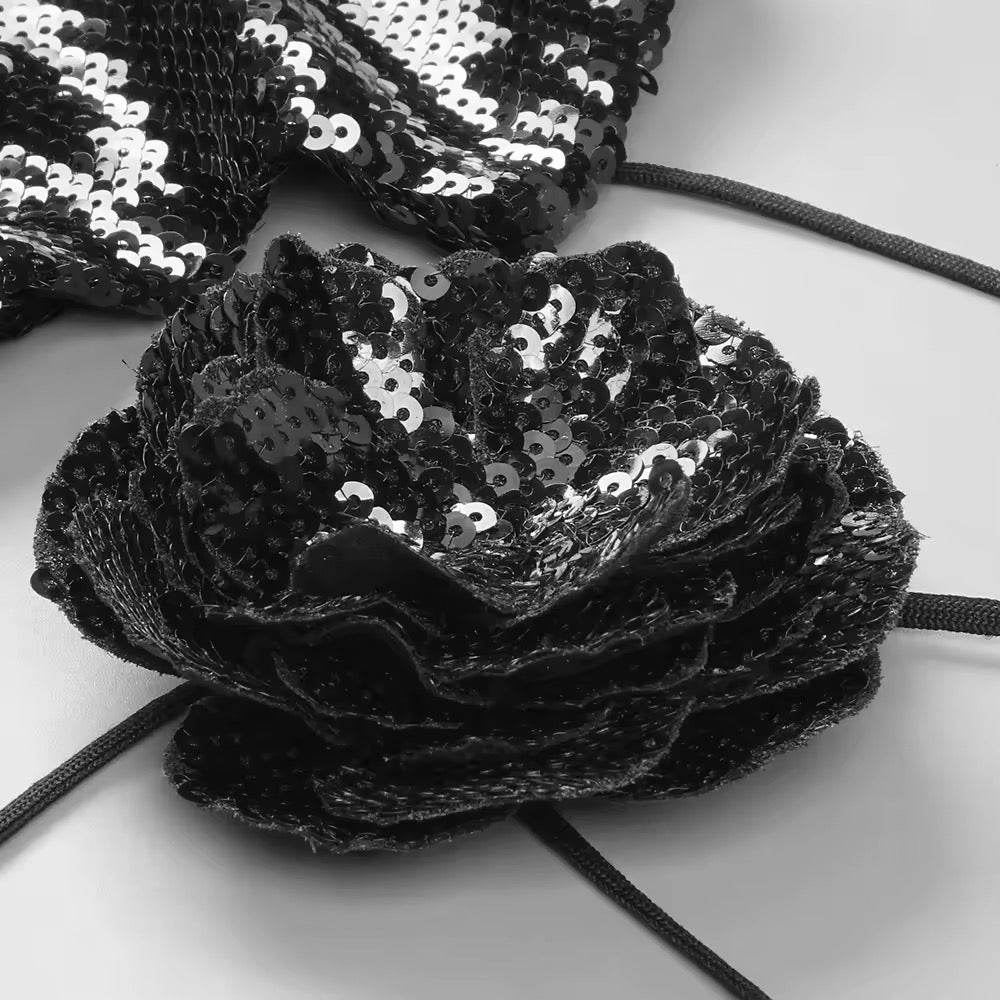 Don't miss out on this must-have dress from Rebeca the Label. Order now and add a touch of glamour to your wardrobe. Perfect for any special occasion, this Backless Halter Black Mesh Sequins Flower Maxi Long Gowns Dress is a reliable choice that will make you look and feel amazing.