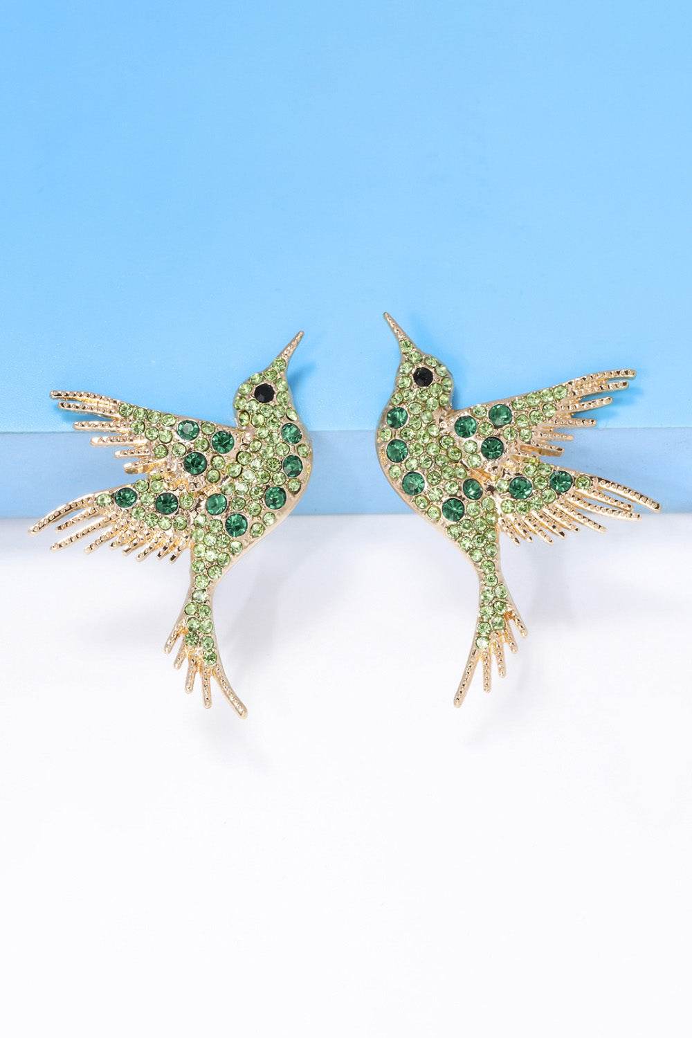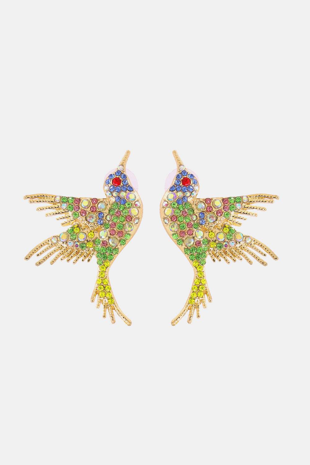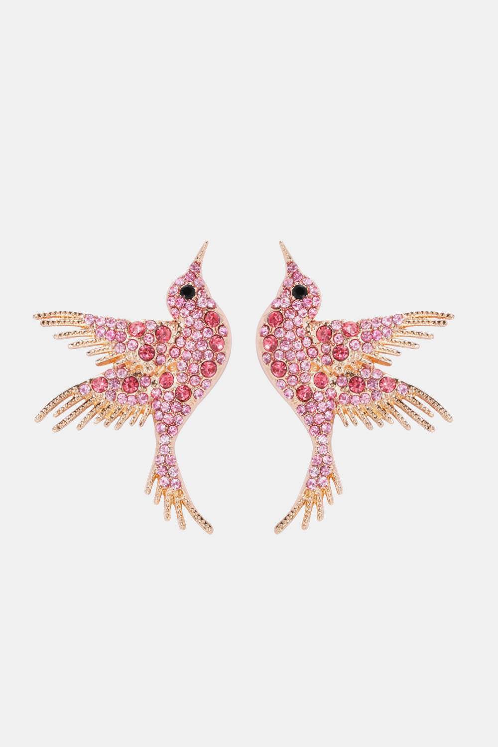 Bird Shape Zinc Alloy Frame Glass Stone Dangle Earrings