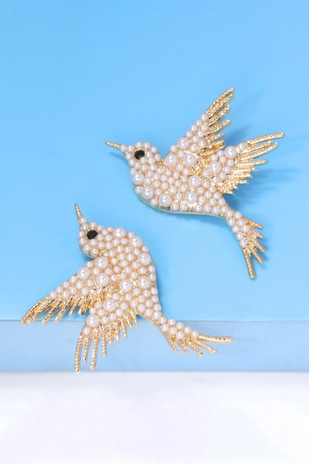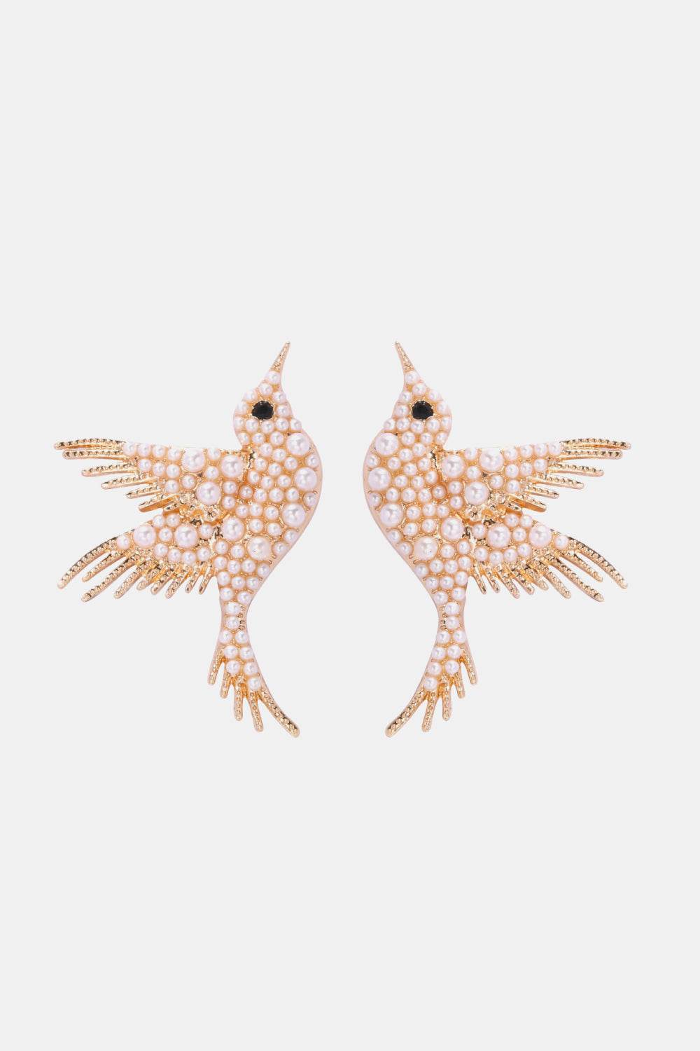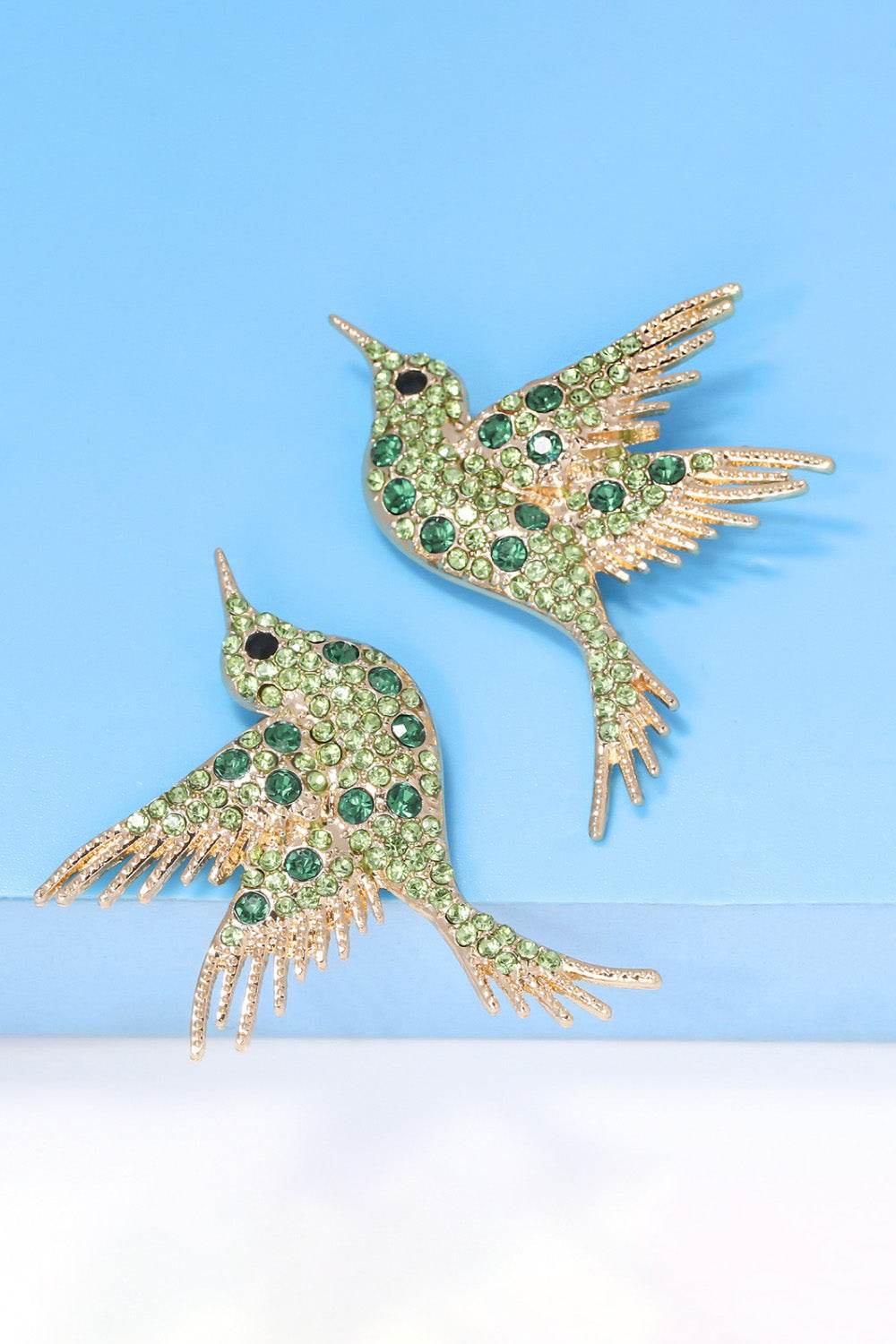 Bird Shape Zinc Alloy Frame Glass Stone Dangle Earrings