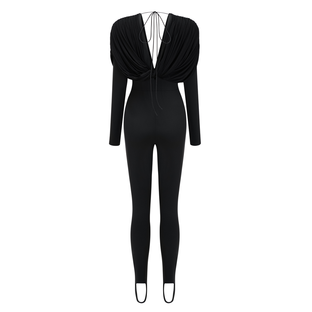 Black Deep V-Neck Draped Jumpsuit