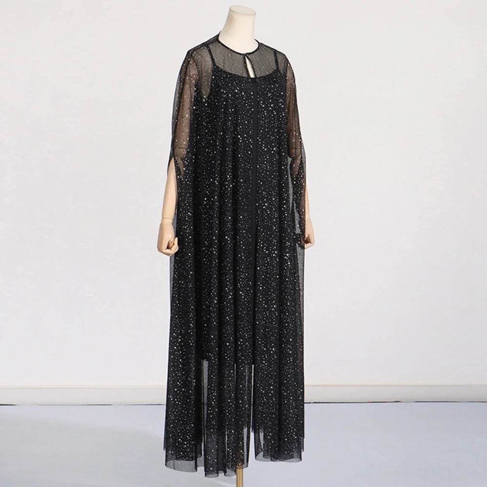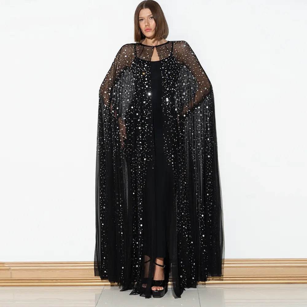 Black Sequin Decorative Mesh Cloak 2-piece Set