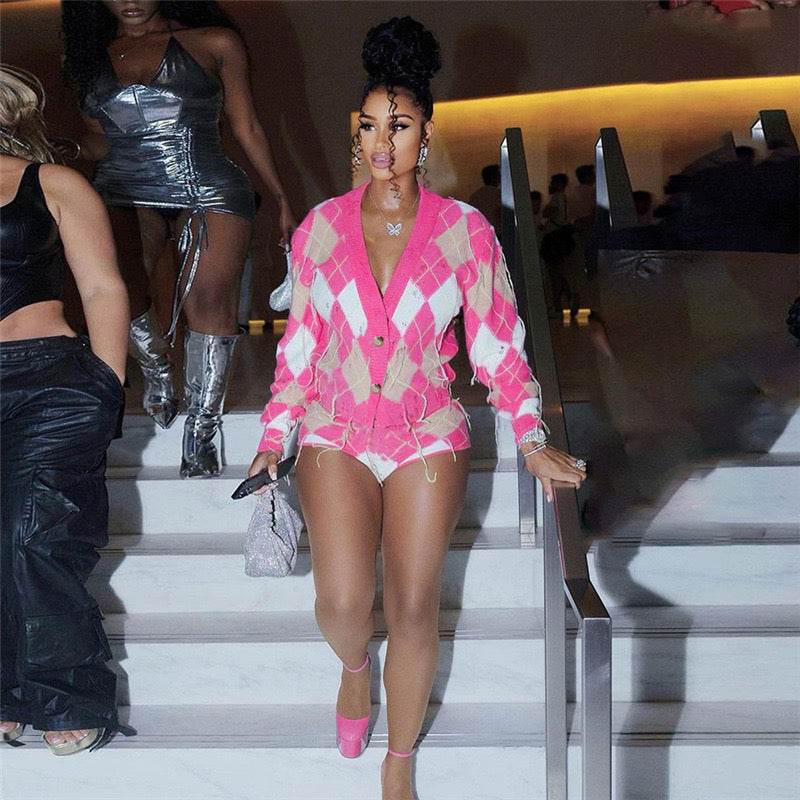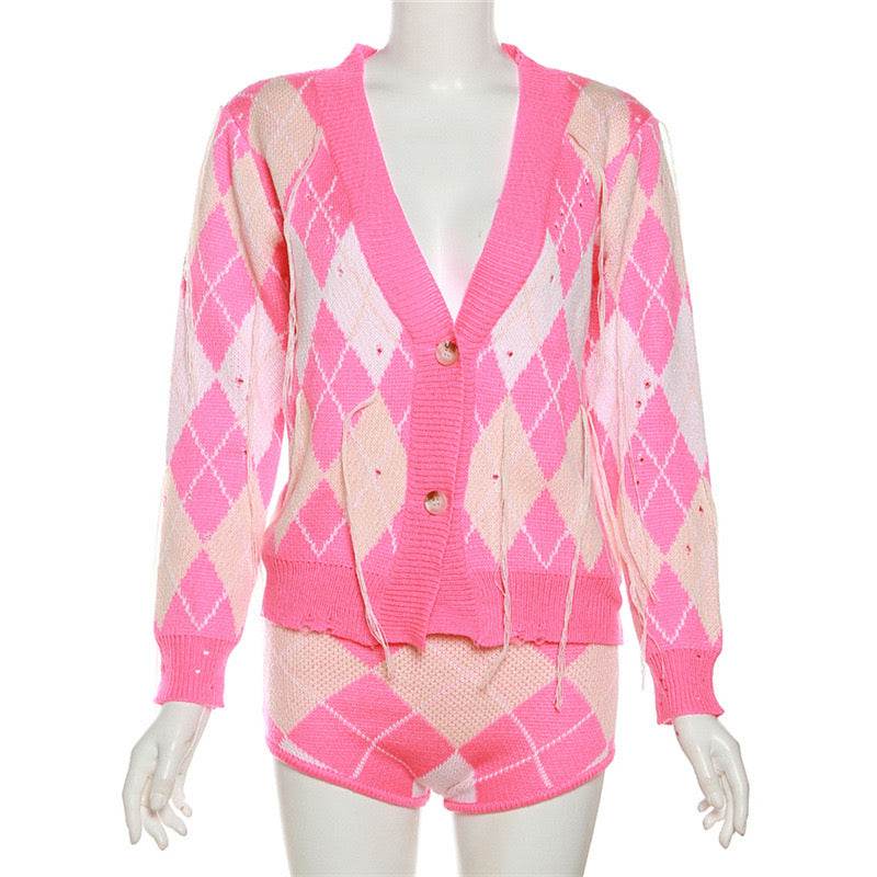 Contrast Tassel Coat High Waist Slim Shorts Set