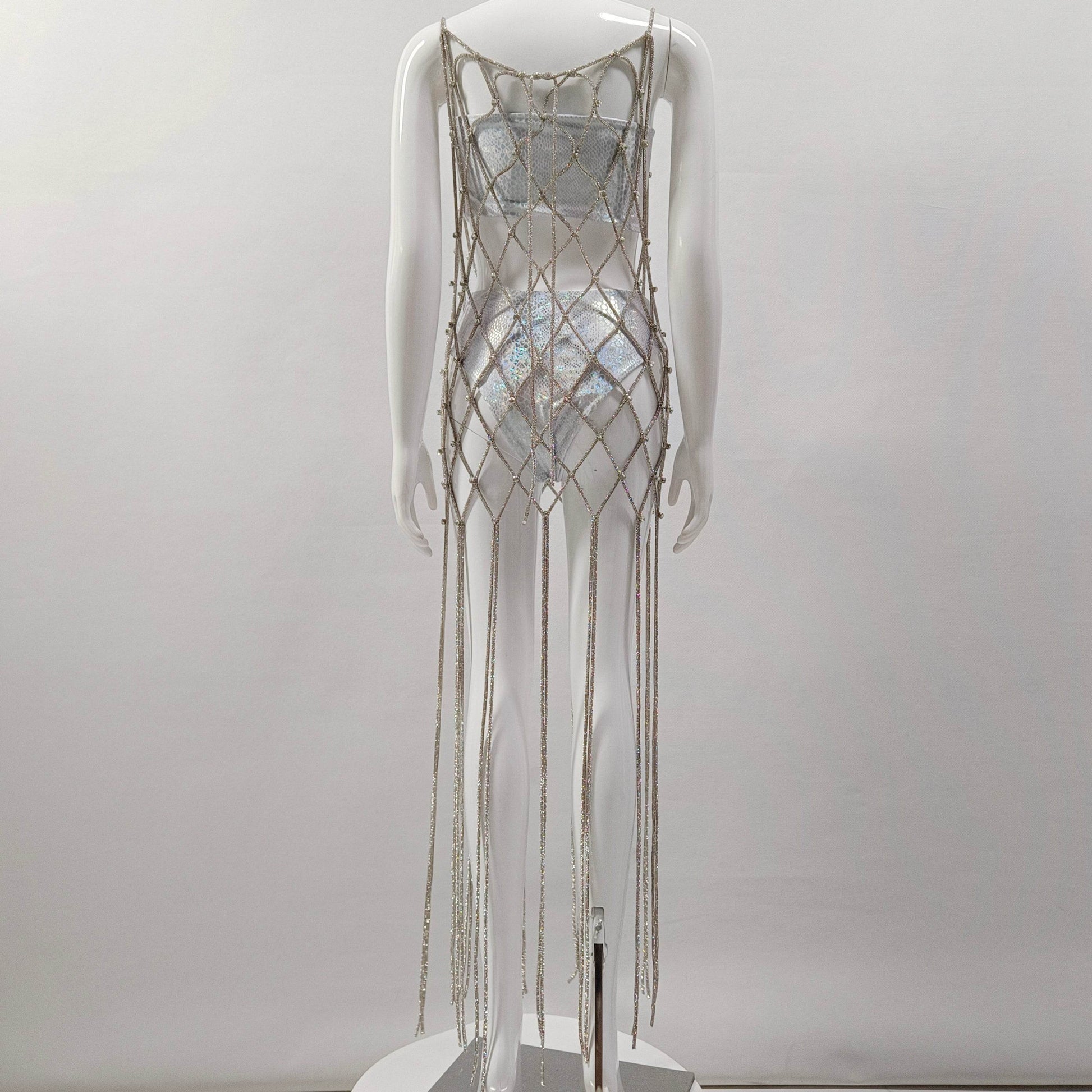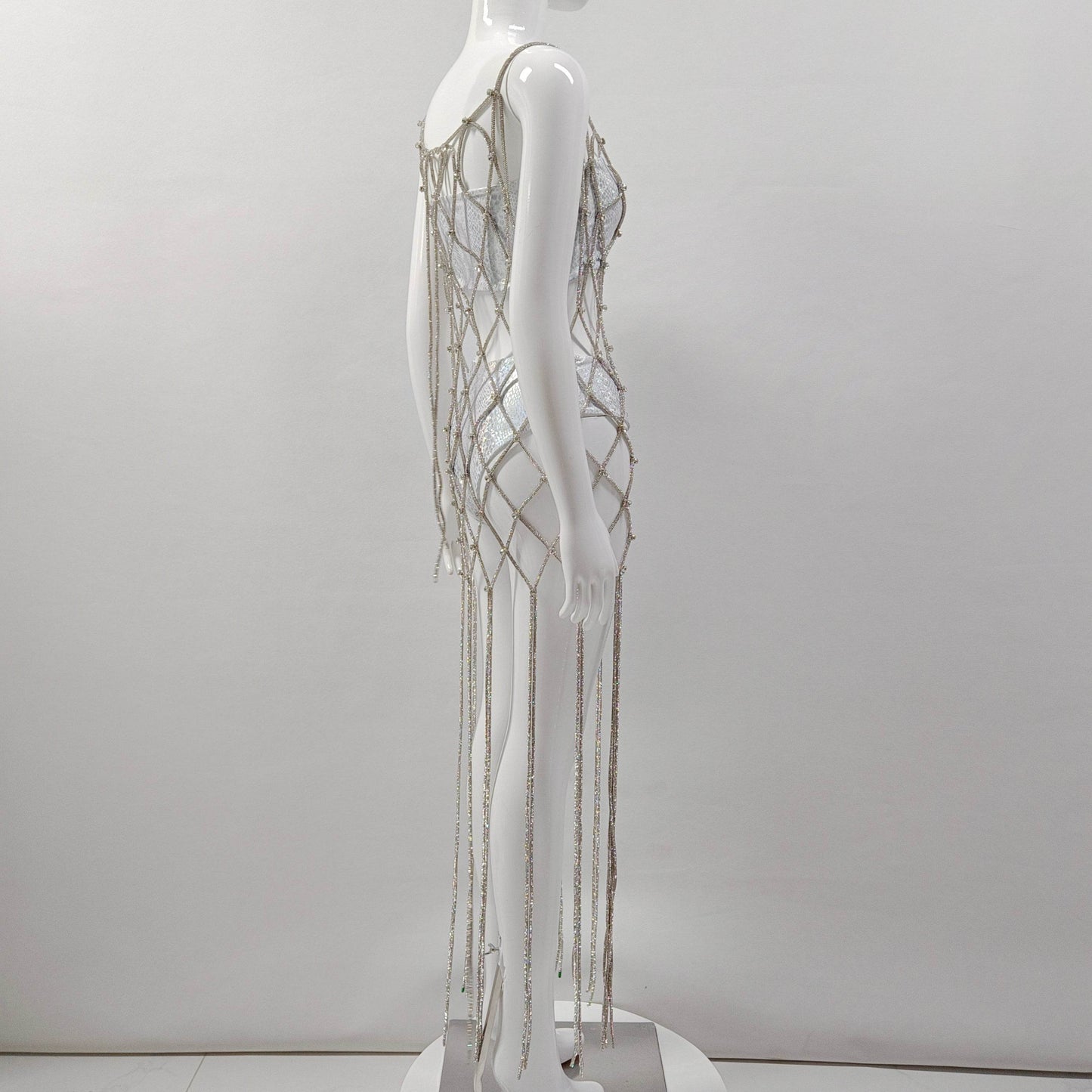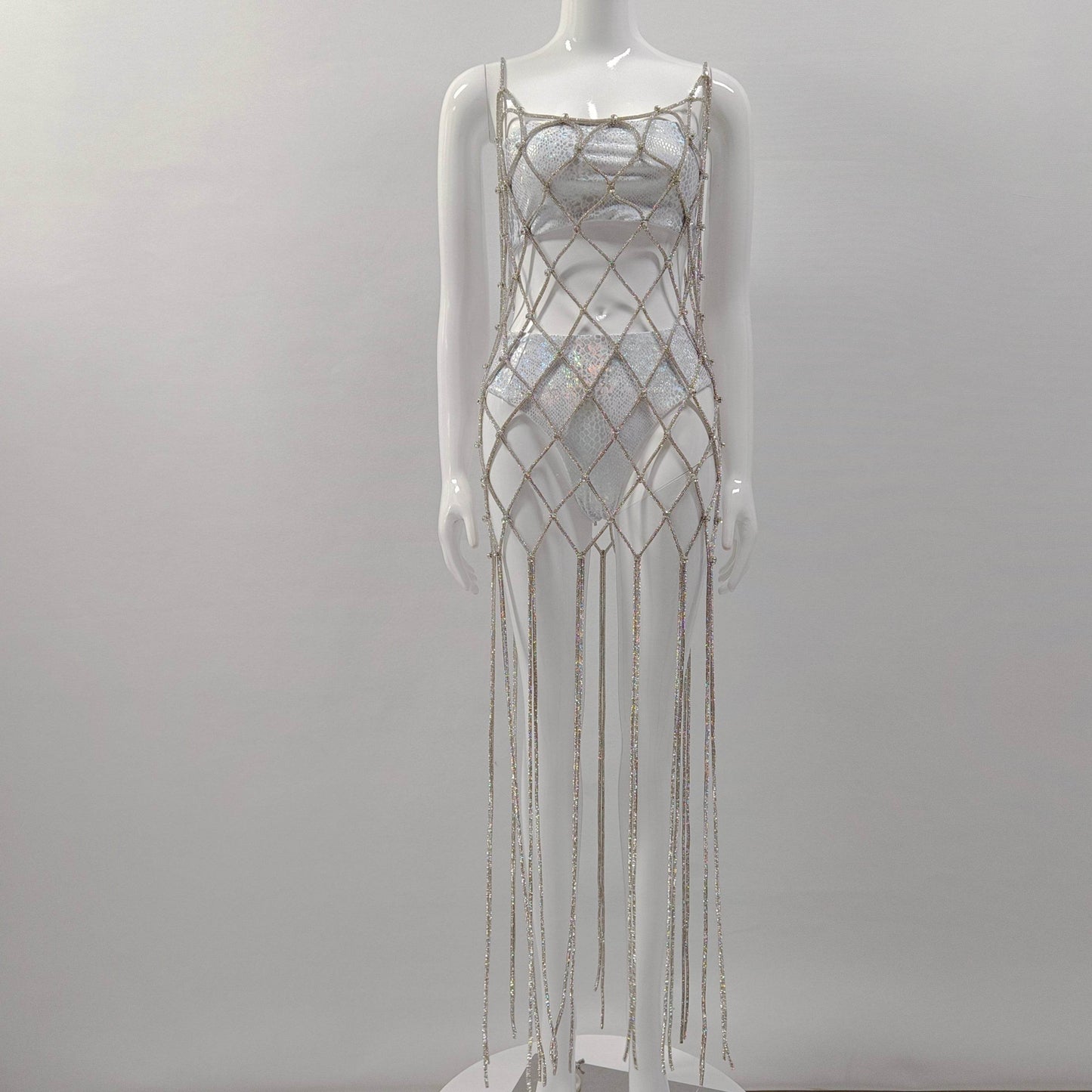 Crystal Diamond Rope Hollow Tassel Long Dress set