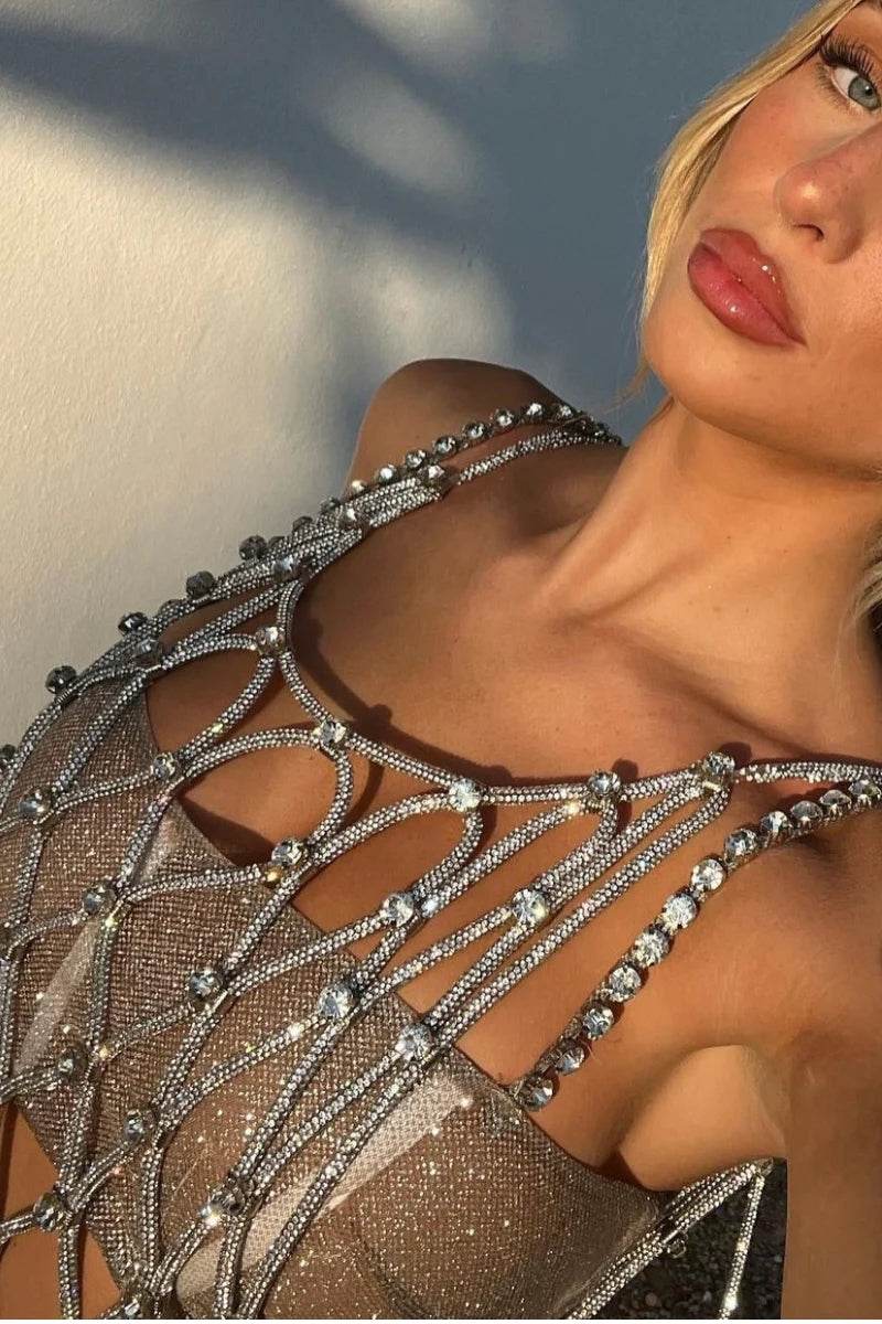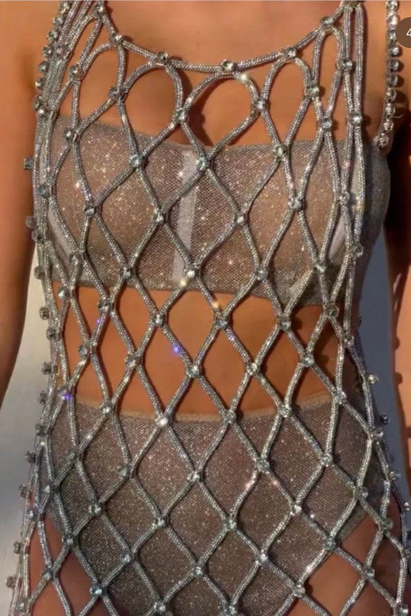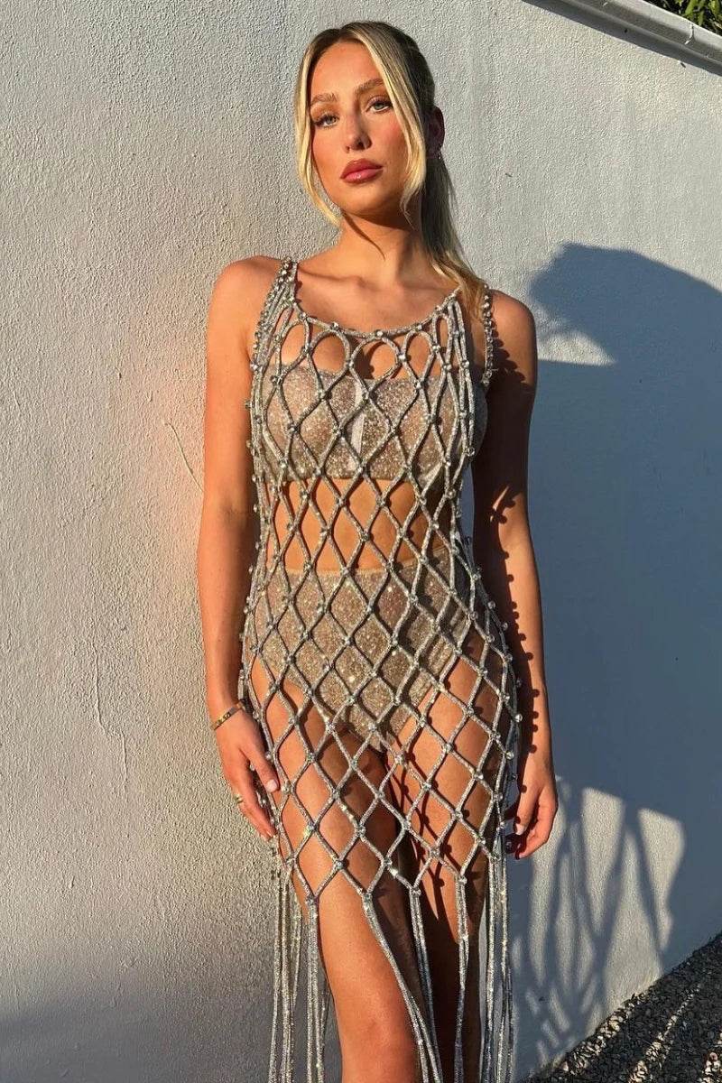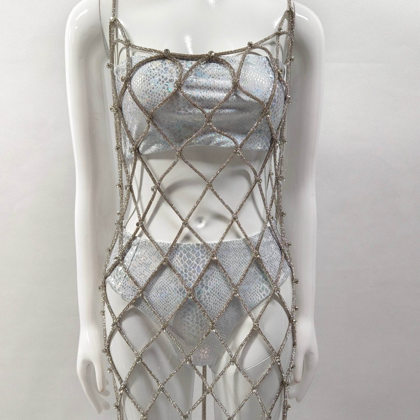 Crystal Diamond Rope Hollow Tassel Long Dress set