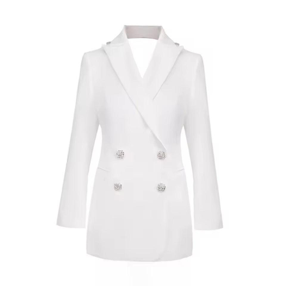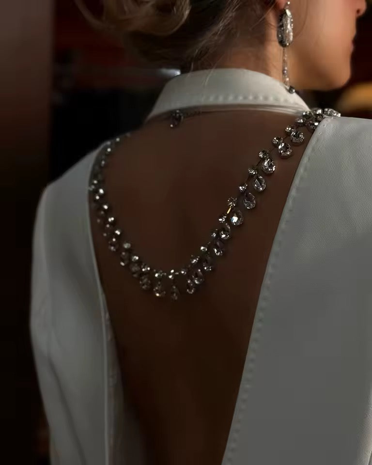 Diamond Backless Blazer Sequin See Through Lace Skirt set