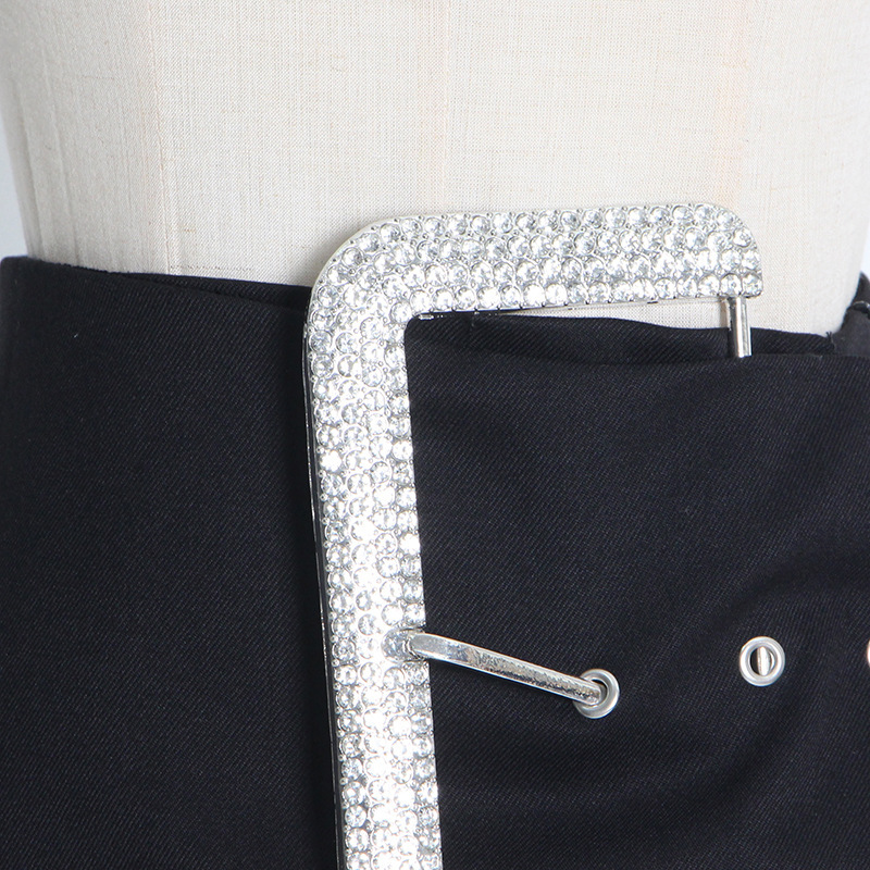 Diamond Embedded Black Skirt Belt Design a Line Skirt