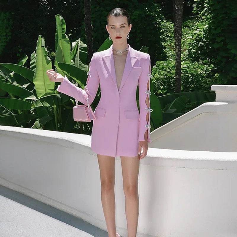Diamond Hollow Bow blazer Bandage Mini Dress