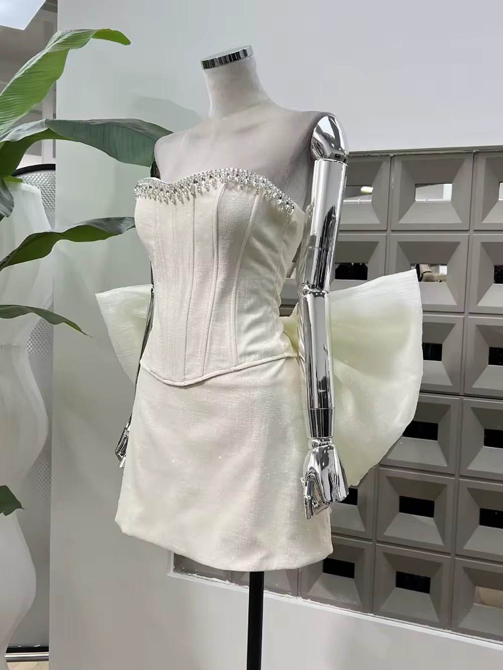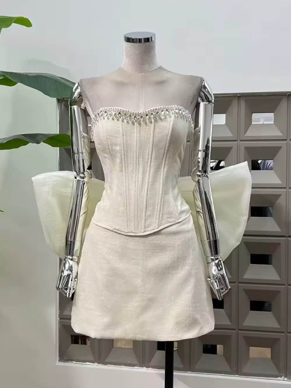 Diamond Strapless Fishbone Top and Pencil Mini Skirt Set