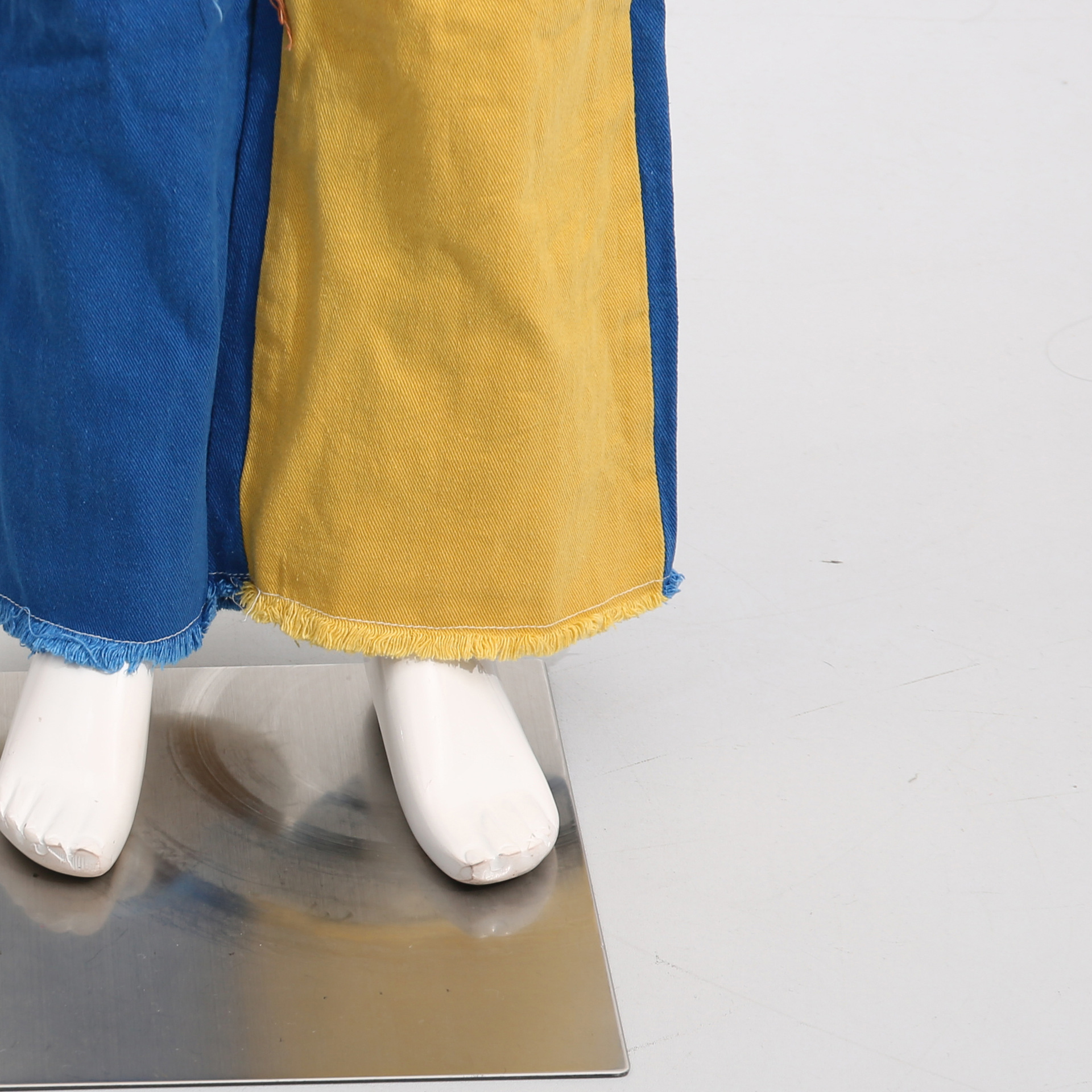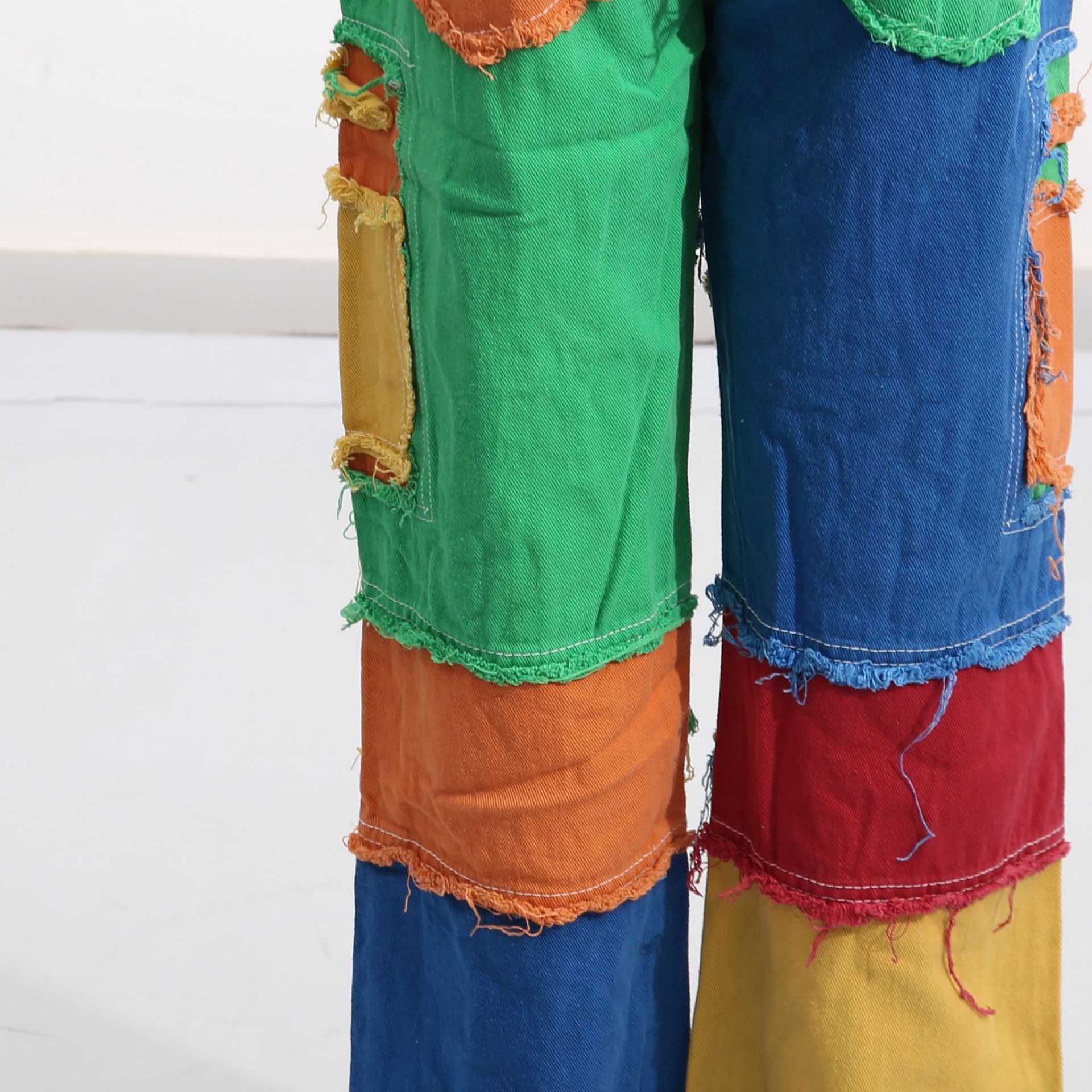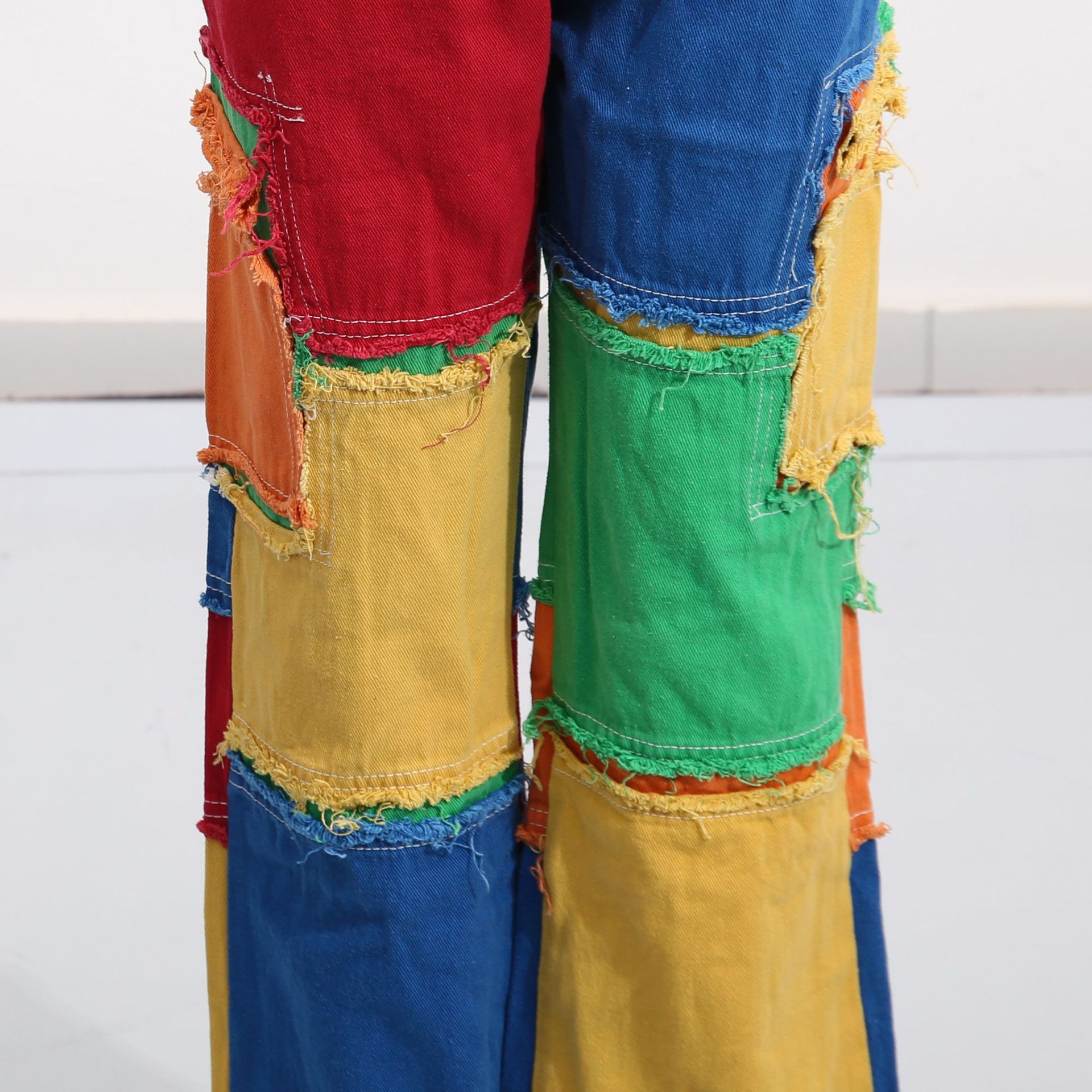 Street Mixed Color Stitching High Waist Brushed Straight Leg Pants