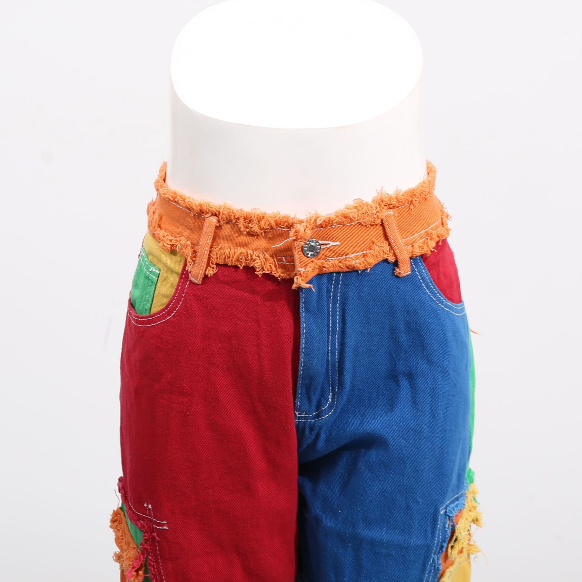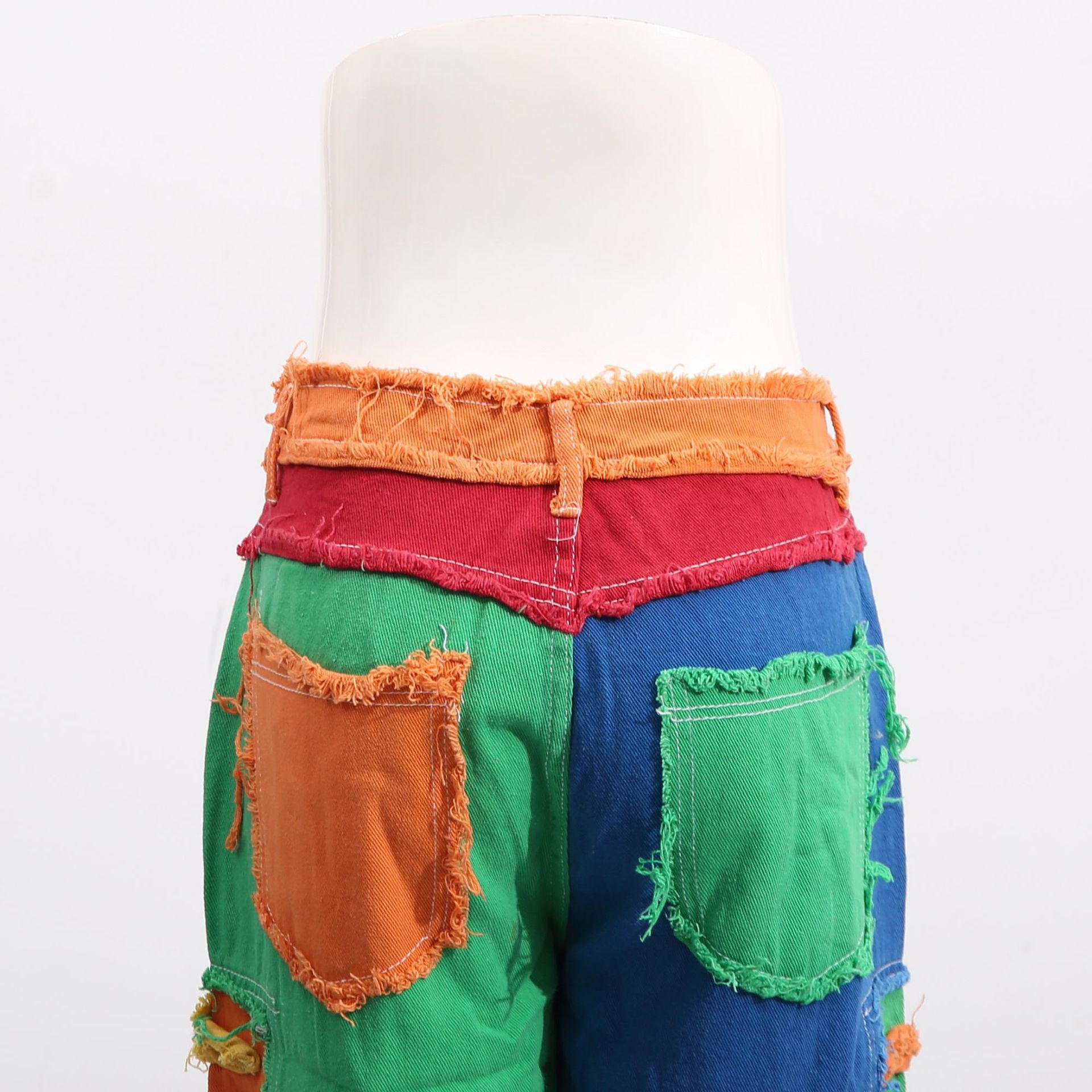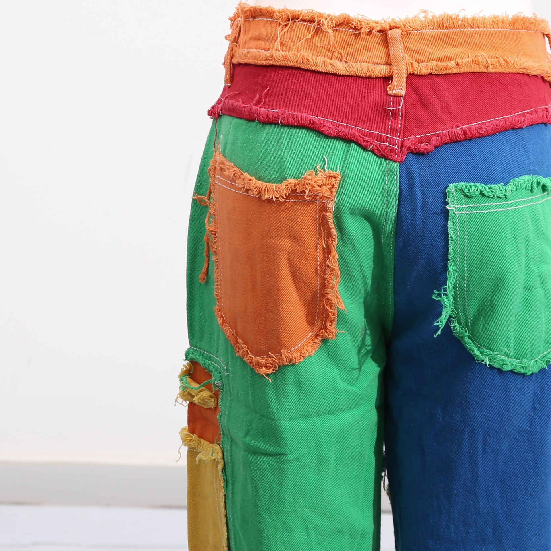 Street Mixed Color Stitching High Waist Brushed Straight Leg Pants