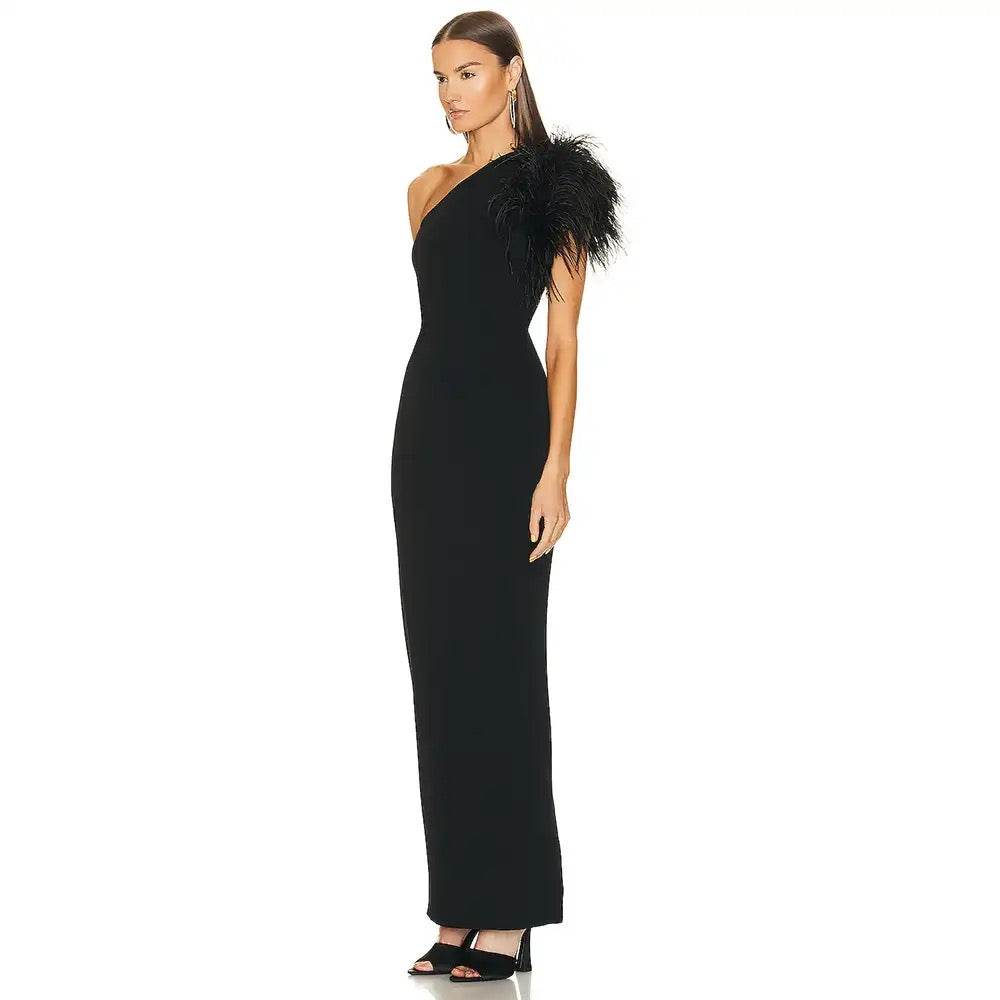 Feather Sexy One Shoulder Sleeveless Tight Maxi Long Bandage Dress