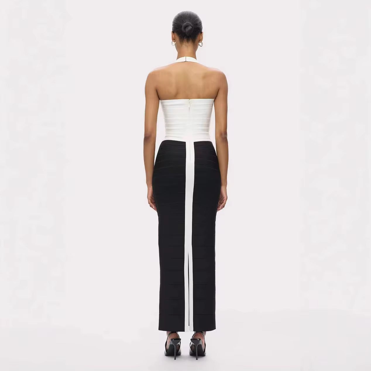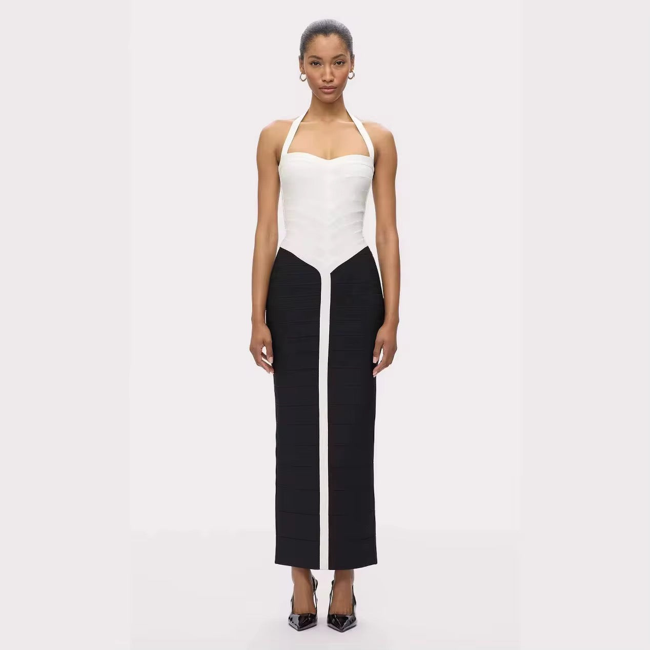 The Halter Off the Shoulder Bodycon Long Bandage Dress is a stunning addition to any wardrobe. This elegant dress features a sophisticated halter neckline that beautifully frames the shoulders, enhancing the wearer's silhouette.