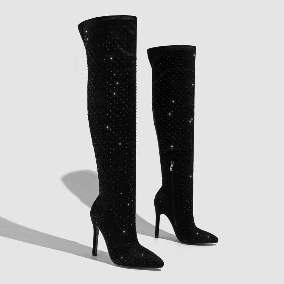 Heels Rhinestone Over The Knee High Boots Sexy Pointed Toe Side